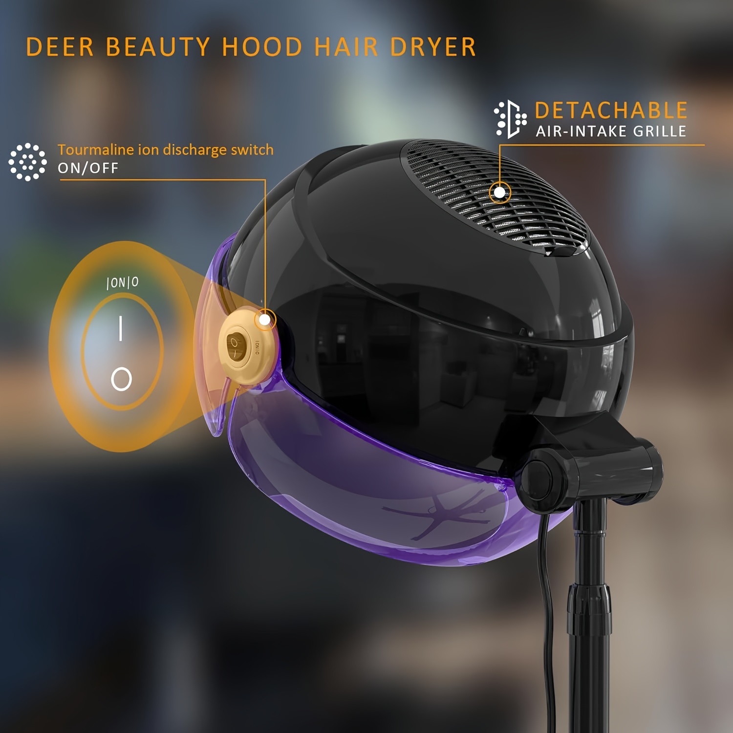 1875W Professional Ionic Hooded Hair Dryer - Fast Drying, Salon-Quality Results, Reduce Frizz and Damage, Advanced Ionic Technology, Cool Shot Button, Concentrator Attachment, Lightweight and Portable Design for Easy Styling