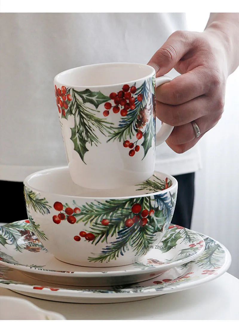 1PC Piatti in ceramica da cucina creativi Squisita stoviglie natalizie Piatti da bistecca per insalata di pasta Piatti in ceramica di alta qualità