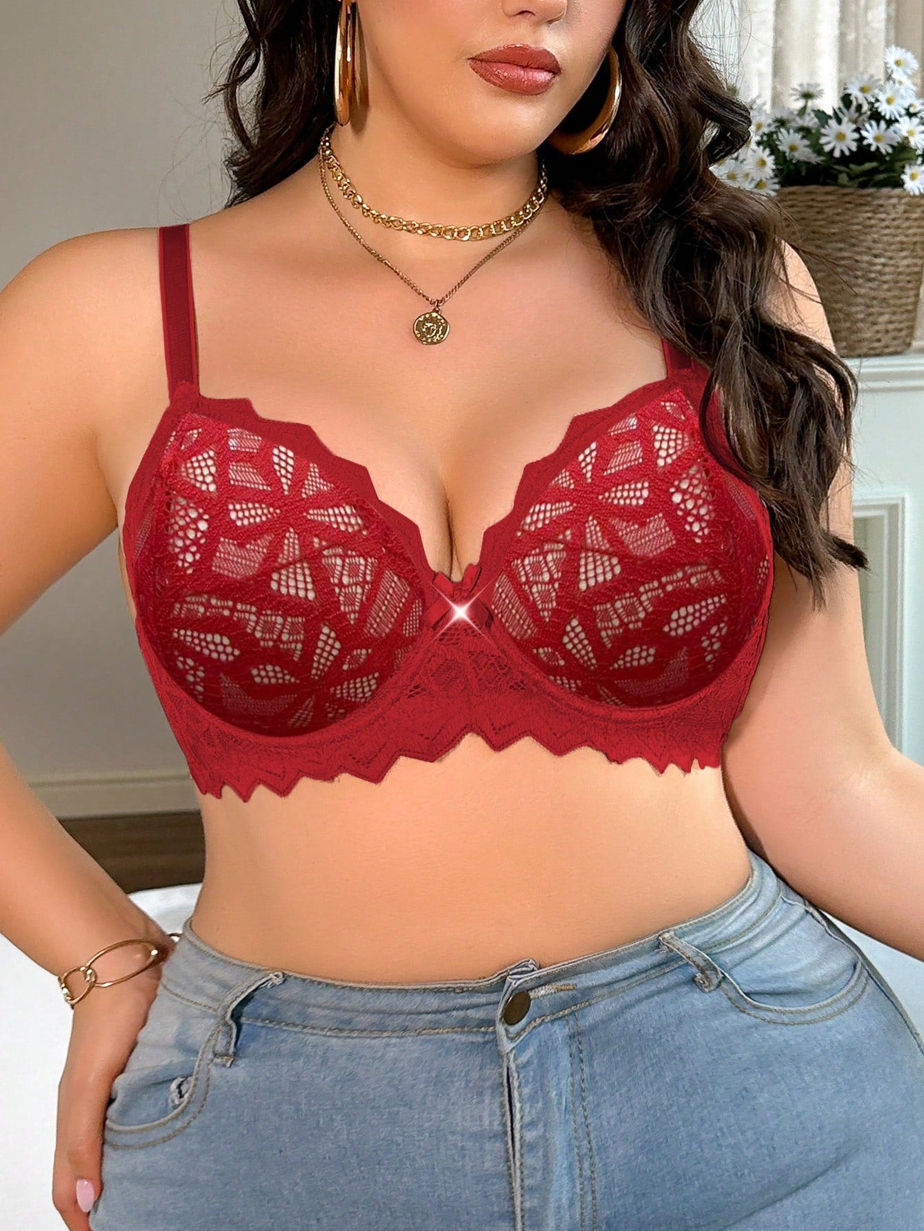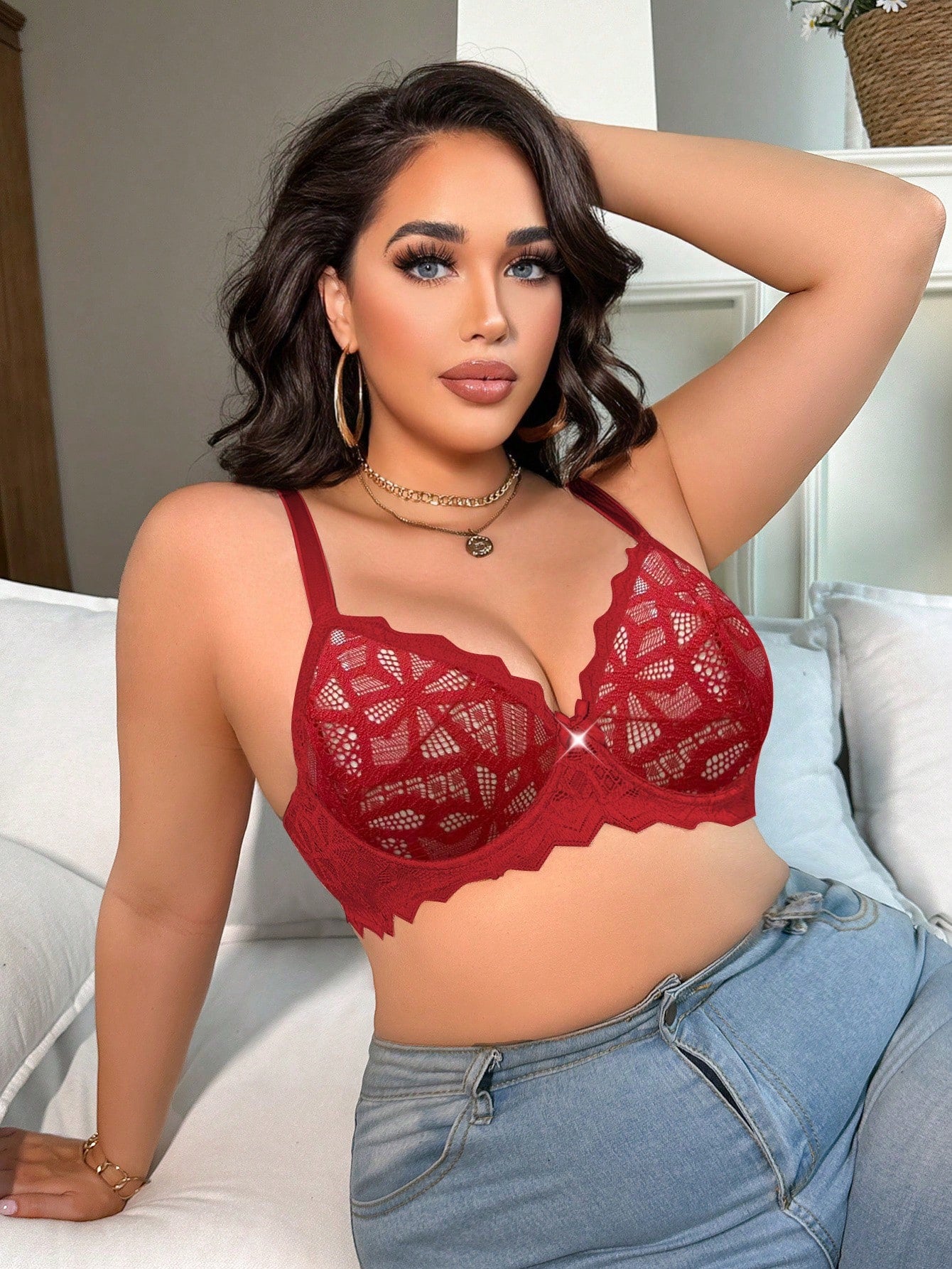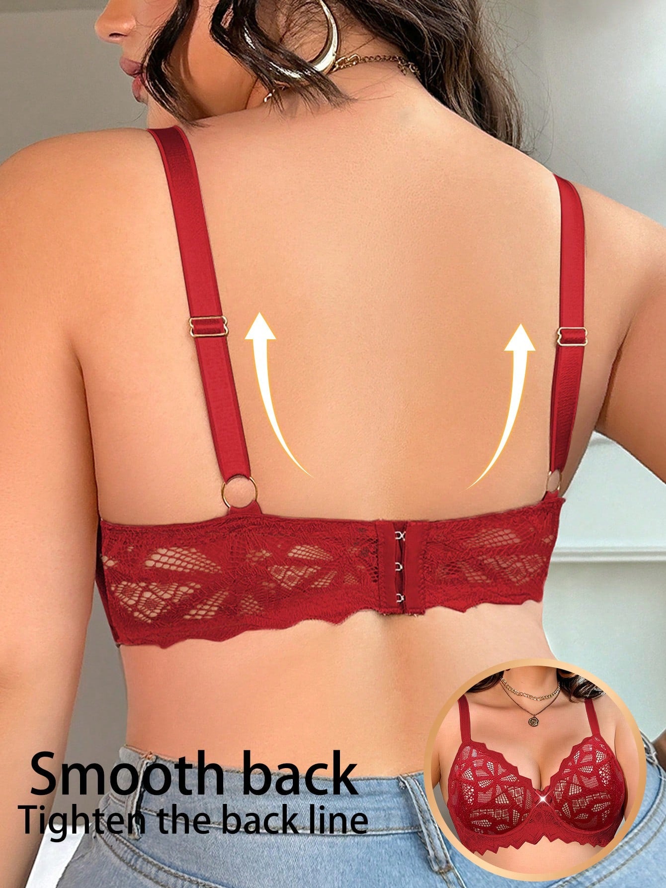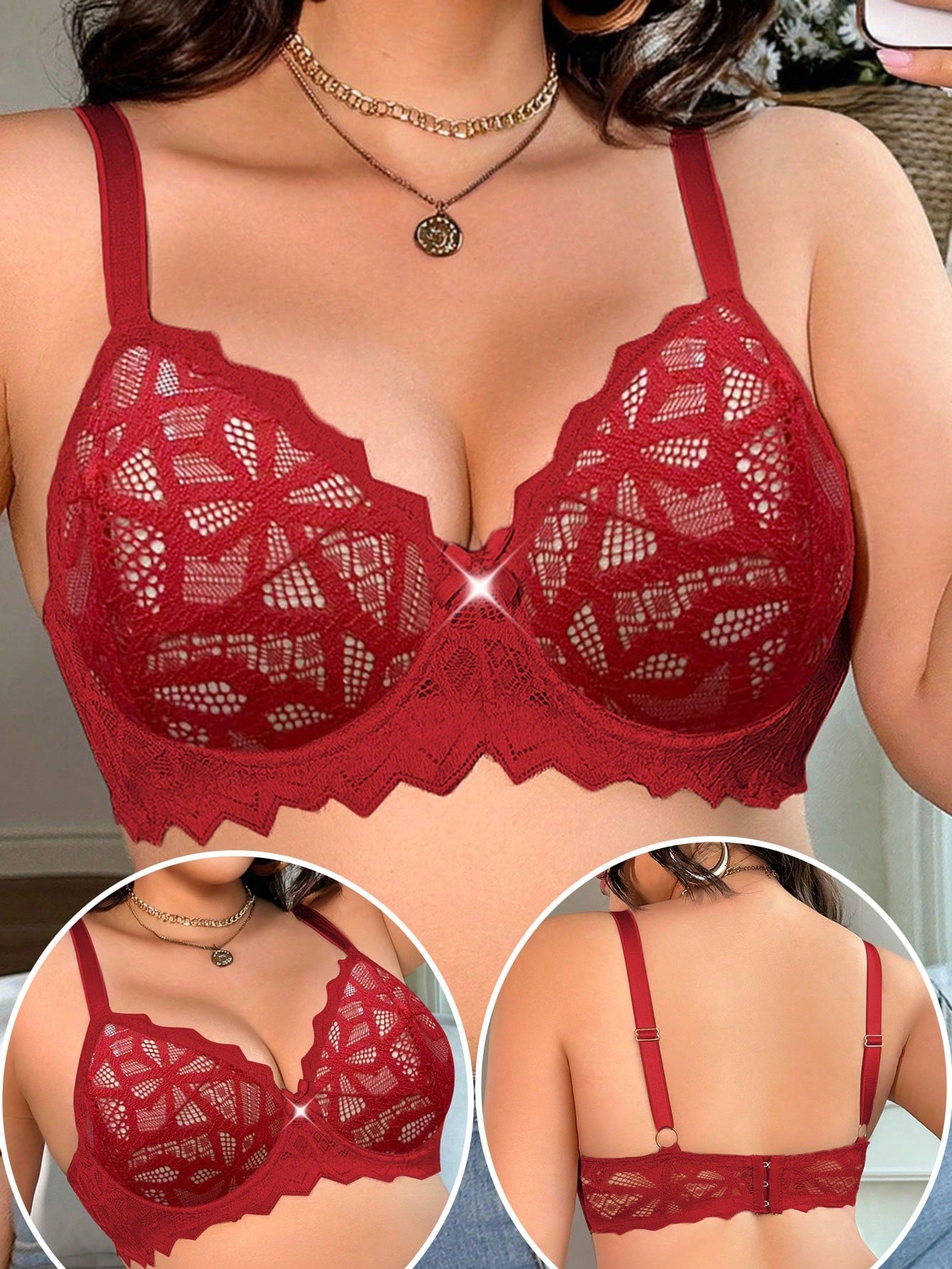 1pc Plus Size Sexy Lace Lingerie Bra With Wire Support