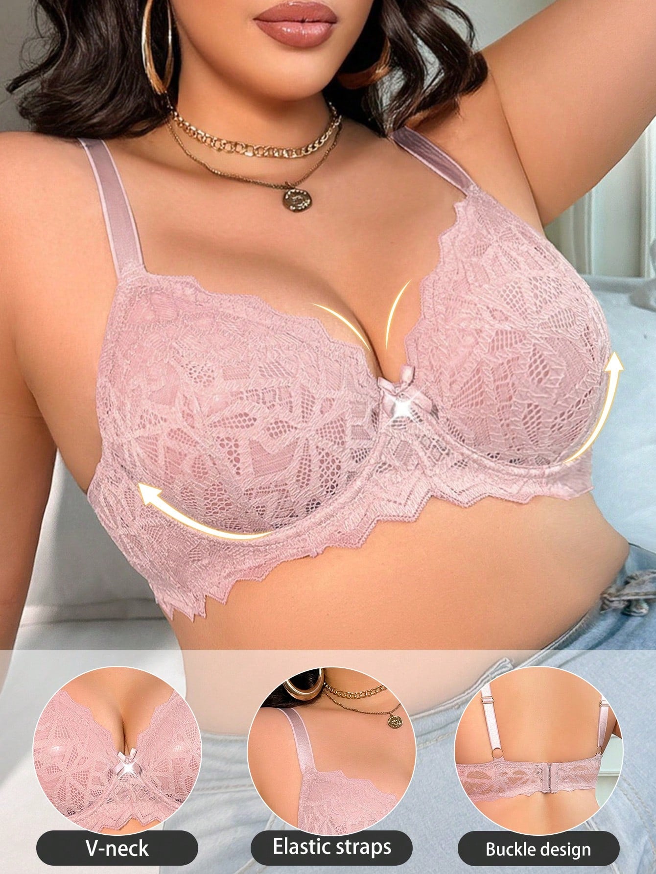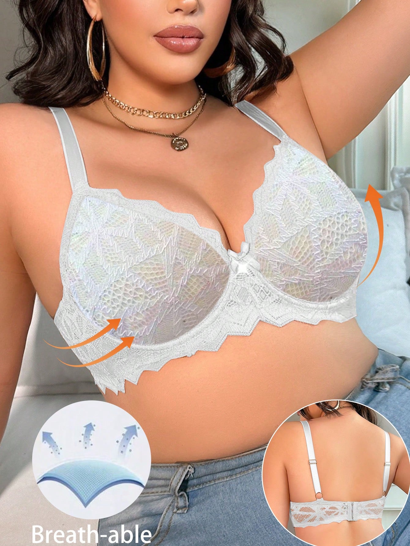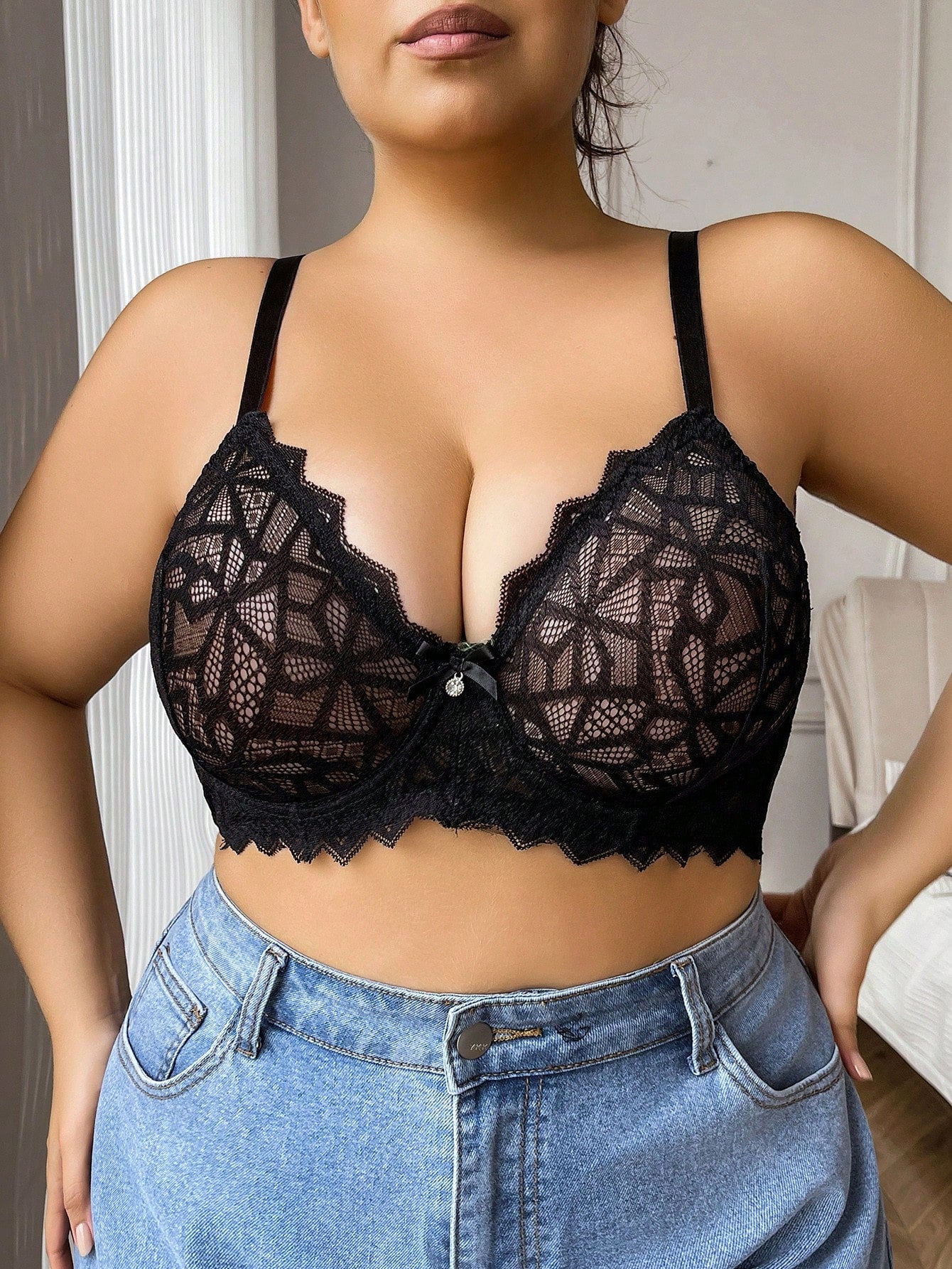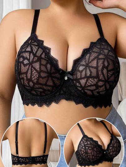 1pc Plus Size Sexy Lace Lingerie Bra With Wire Support