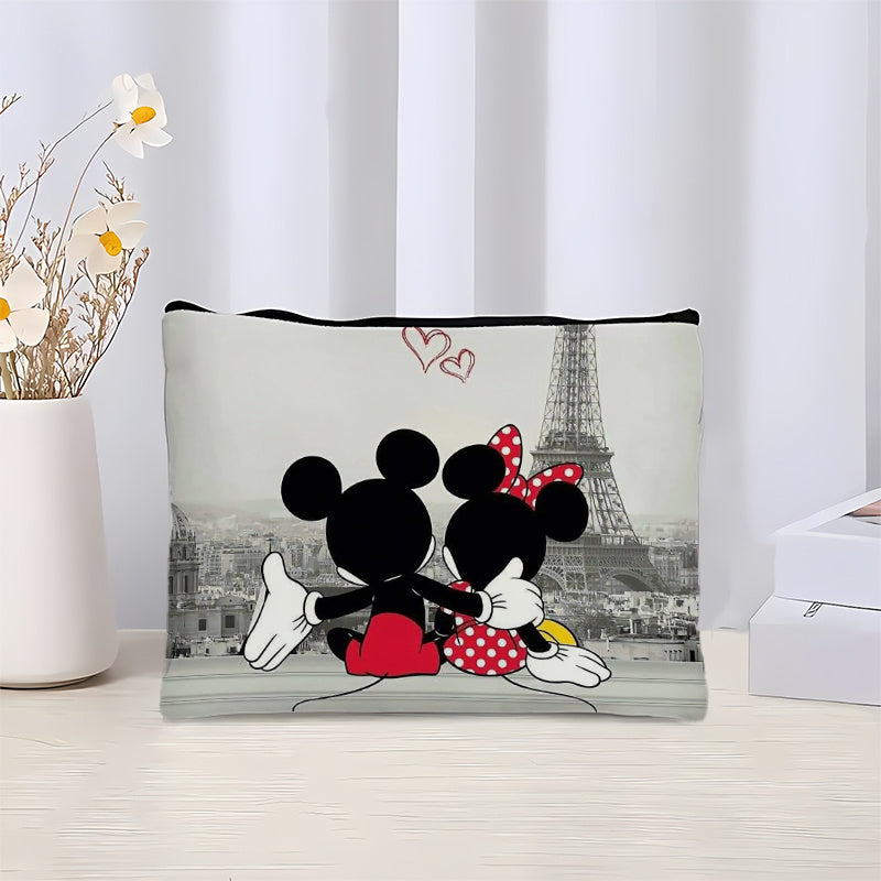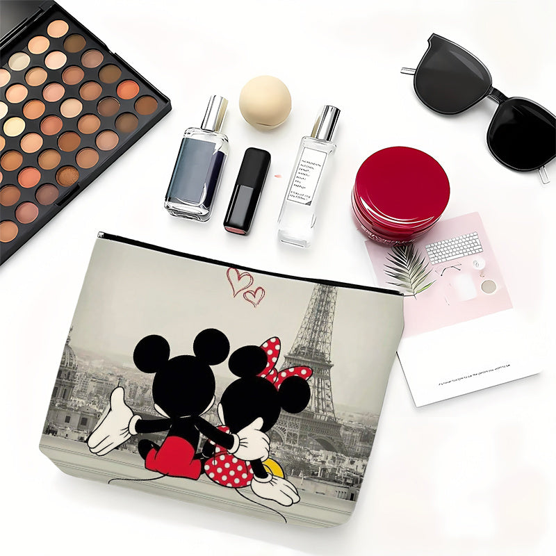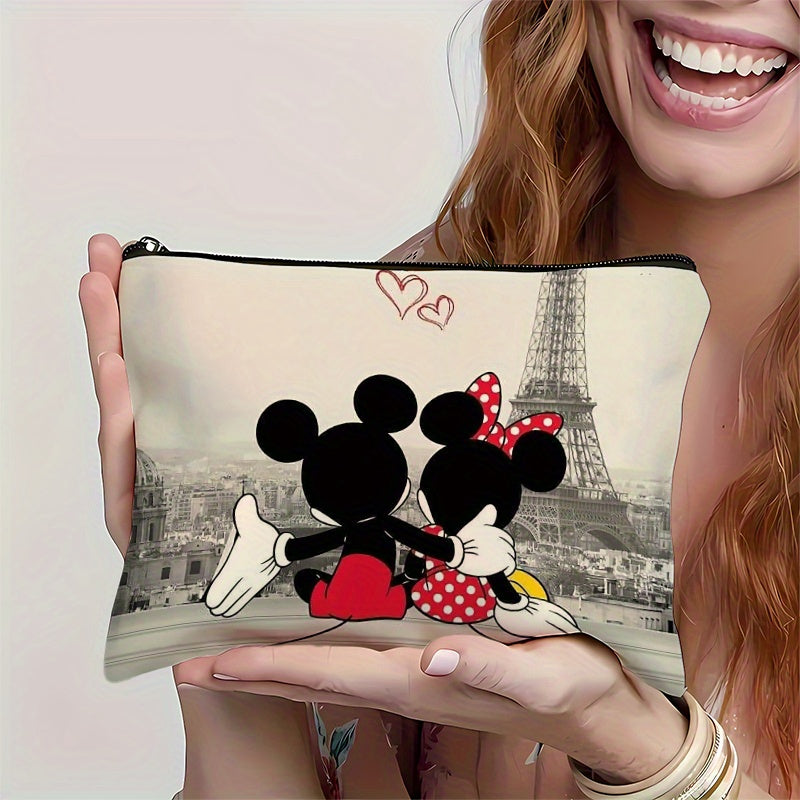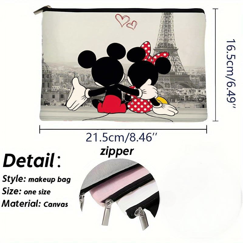 1pezzo Minnie Mouse & Mickey Mouse Paris Eiffel Tower Makeup Bag - Durevole Linen Cosmetic Pouch con design carino di cartoni animati, borsa da toilette con cerniera per uso quotidiano e viaggi, regalo ideale per la festa della mamma, essenziali per il vi