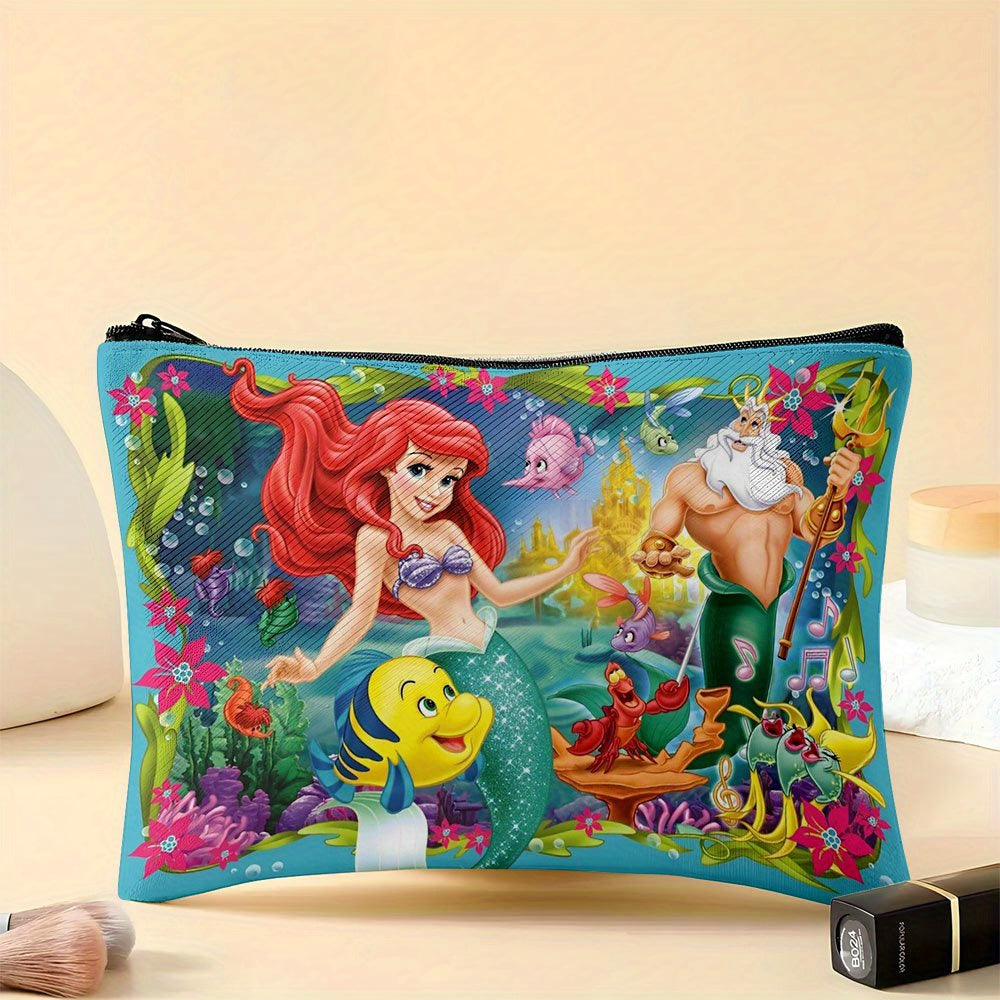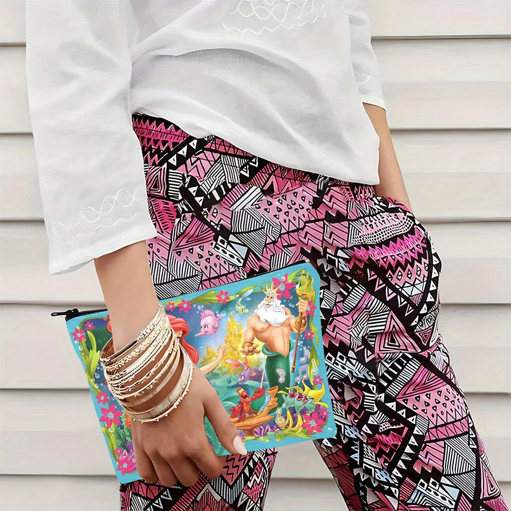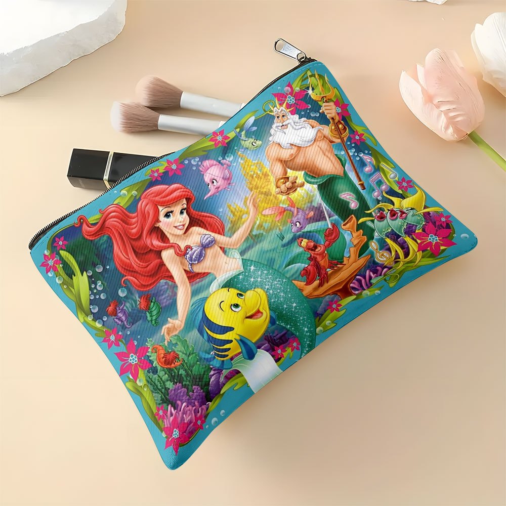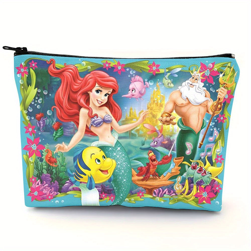 1pz Borsa Cosmetica Disney per La Sirenetta Ariel - Scena Subacquea Vivace con Sebastian & Platessa, Pochette in Lino Resistente, Organizzatore da Viaggio Leggero, Regalo Lavabile a Mano per Donne, Sorelle & Fan di Disney, Design Giocoso | Costruzione con