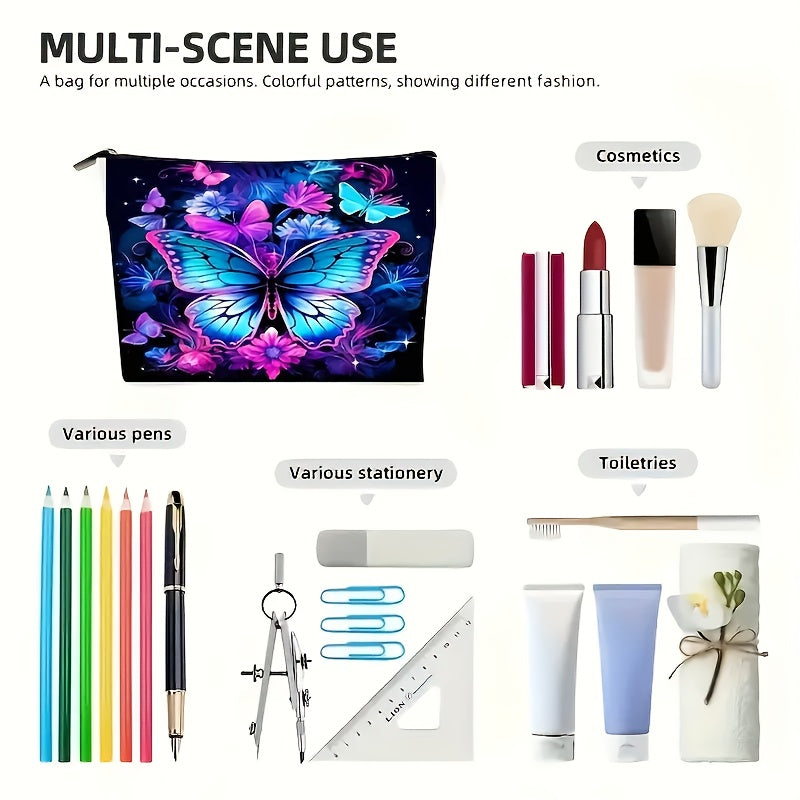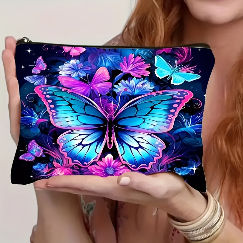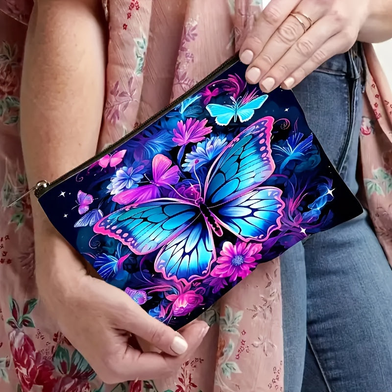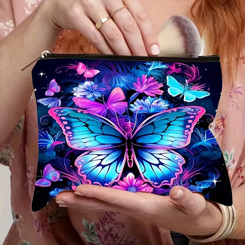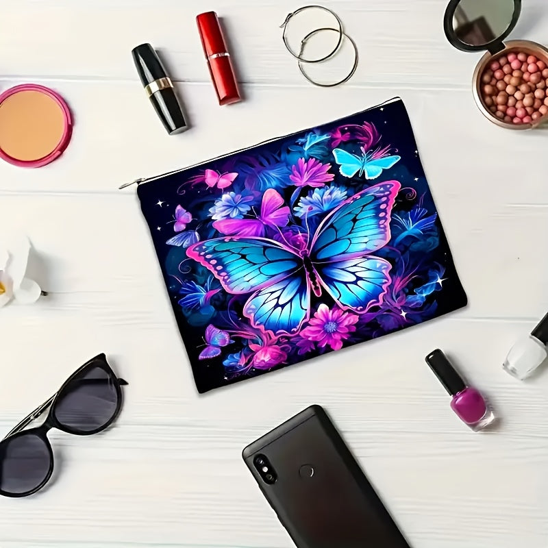 1pz, Borsa per Trucco in Lino con Motivo Farfalla e Fiore, Cerniera di Sicurezza, Borsa da Viaggio per Signore, Borsa per Trucco Leggera con Cerniera, Borsa per Trucco Multifunzione, Borsa per Trucco, Borsa da Toilette