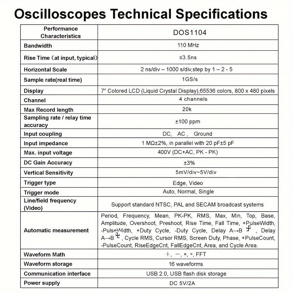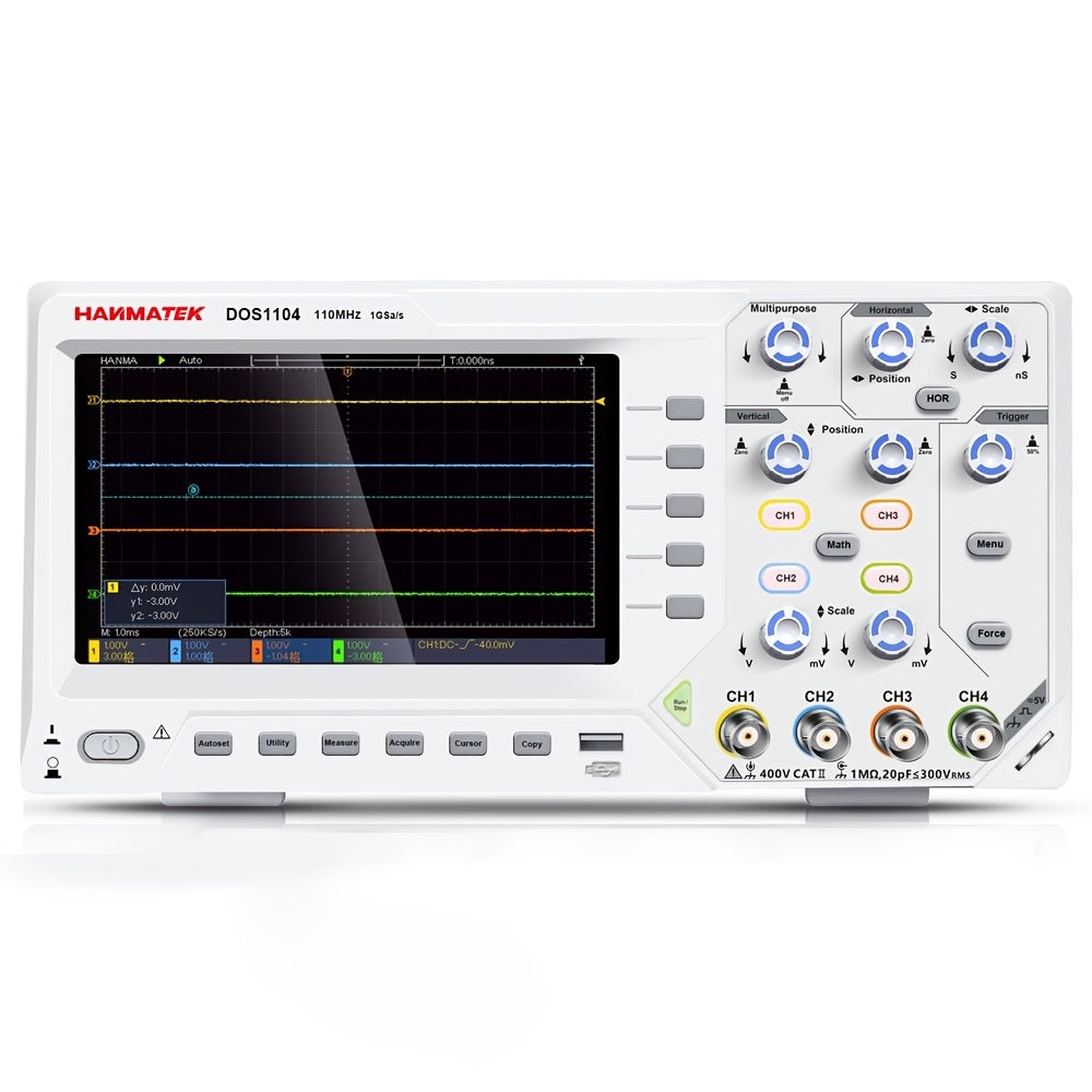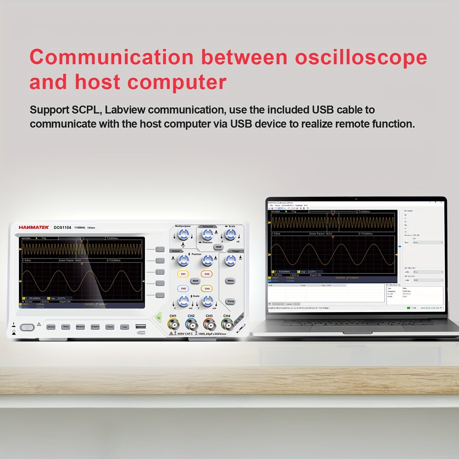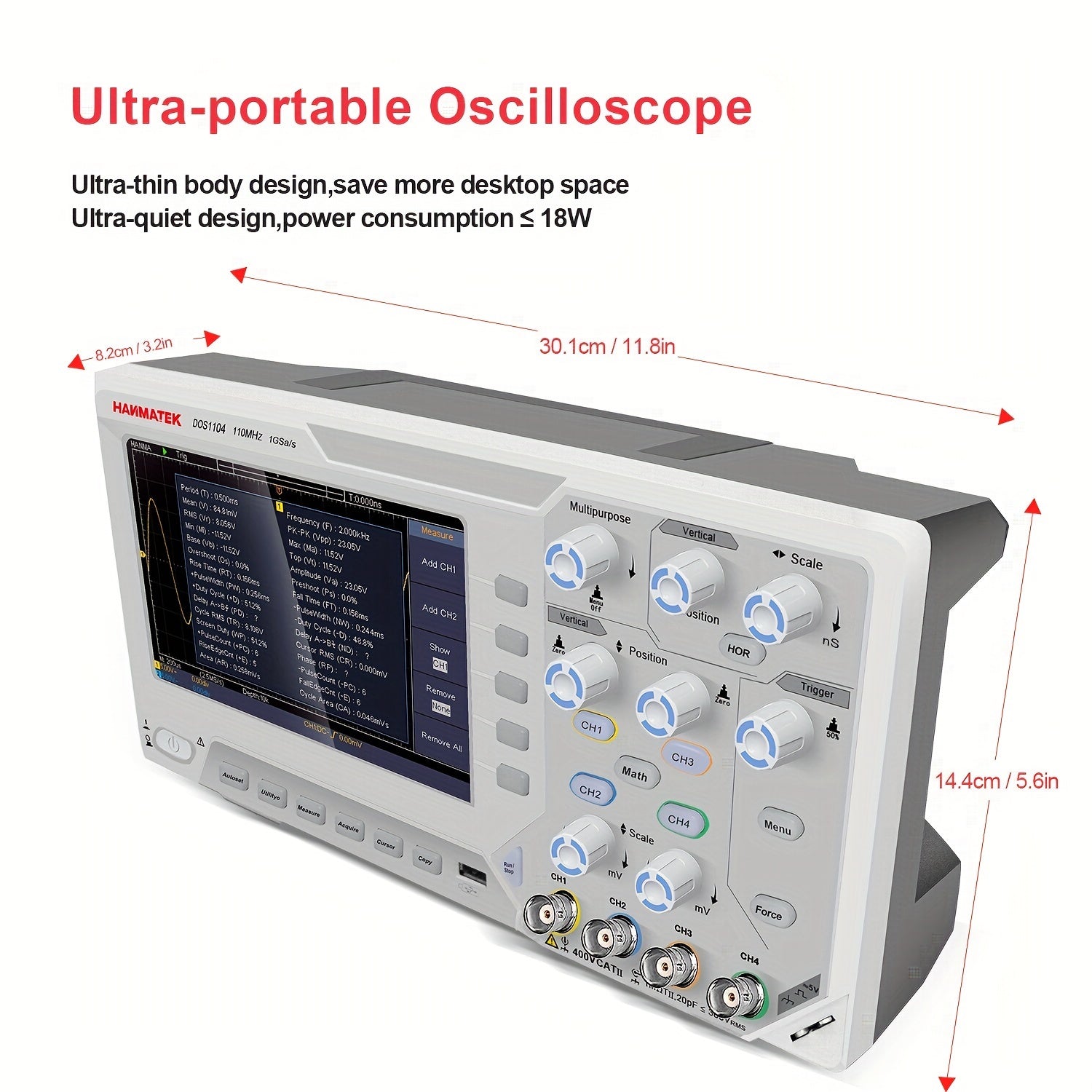 1pz HANMATEK DOS1104 Oscilloscopo Digitale, 4 canali 110MHz Bandwidth, 1GSa/s Tasso di Campionamento, Alimentato tramite USB, senza batteria inclusa