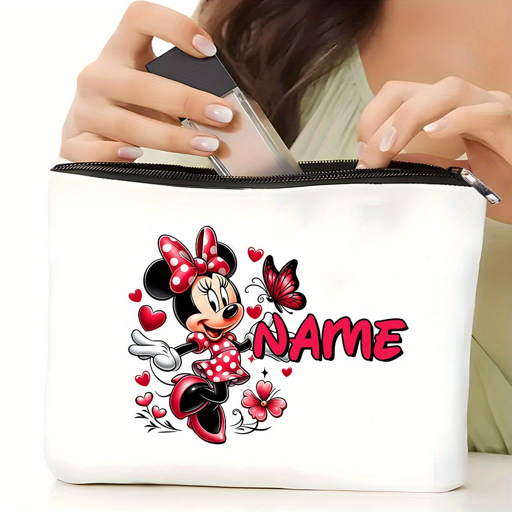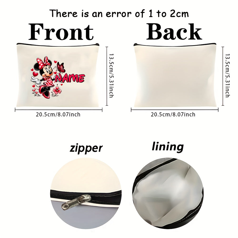 1pz Minnie Mouse Borsa Clutch Personalizzabile - Poliestere Bianco, Borsa Trucco da Viaggio Anime-Themed con Cerniera, Grande Capacità Multi-Funzionale, Ideale per l'uso quotidiano e le feste, Regalo Perfetto per le Donne, Borsa Cosmetica da Viaggio|Acces