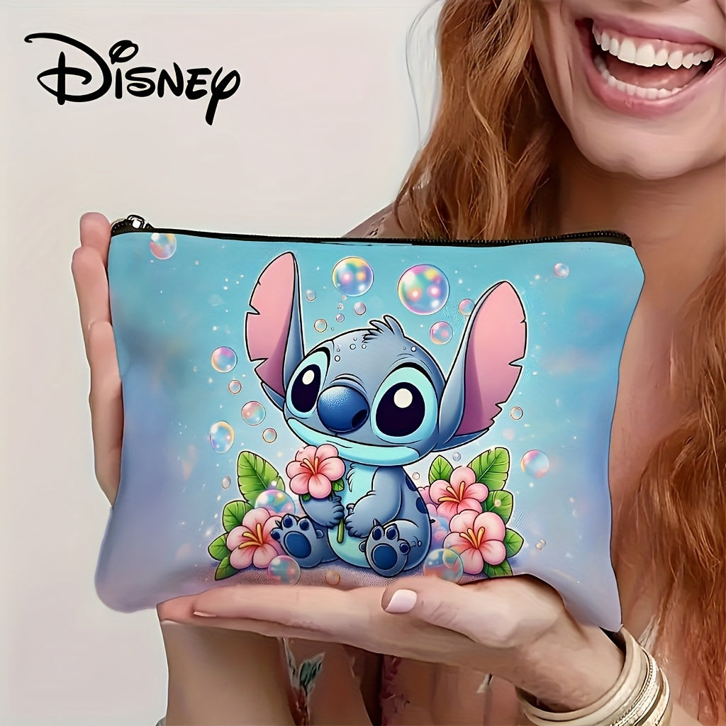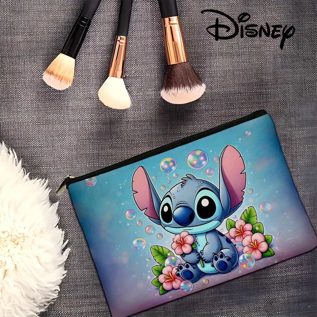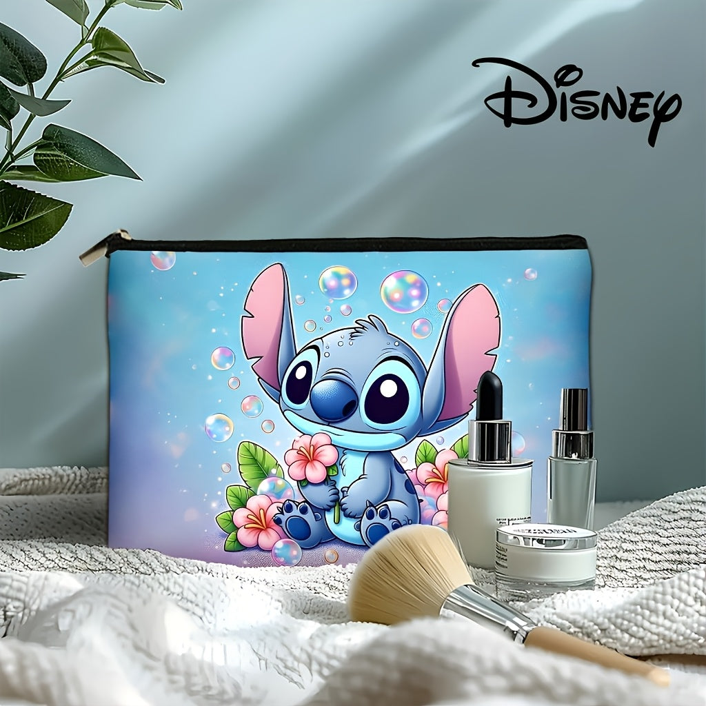 1pz Stitch Makeup Bag - Design di Stitch azzurro carino con bolle e fiori, borsa con cerniera pieghevole per viaggi, ufficio o regalo, materiale in poliestere resistente, decorazione vibrante per la camera, trousse da viaggio