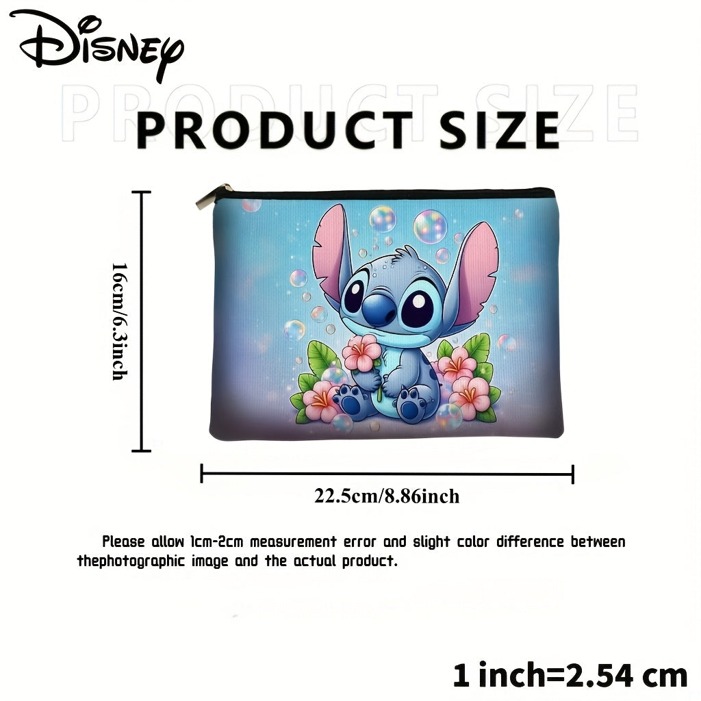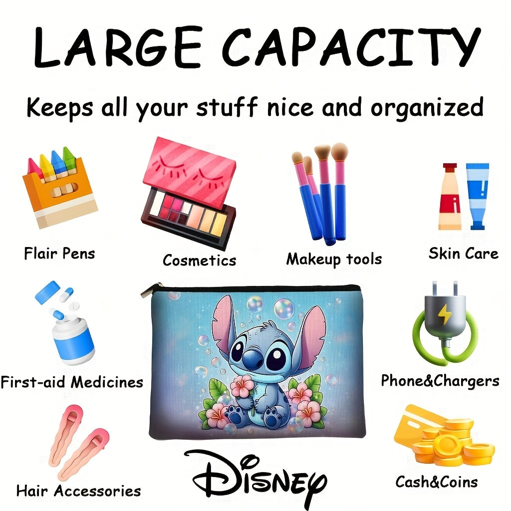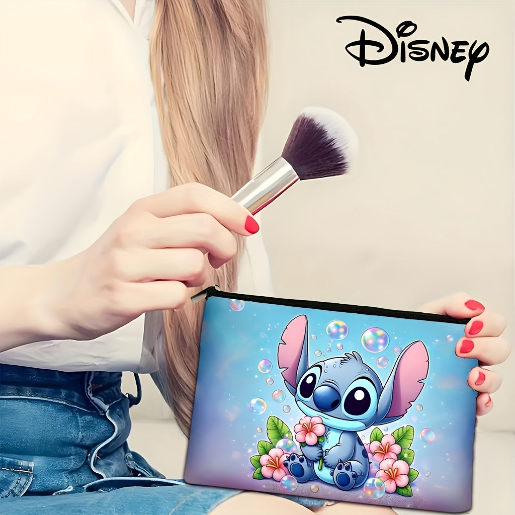 1pz Stitch Makeup Bag - Design di Stitch azzurro carino con bolle e fiori, borsa con cerniera pieghevole per viaggi, ufficio o regalo, materiale in poliestere resistente, decorazione vibrante per la camera, trousse da viaggio