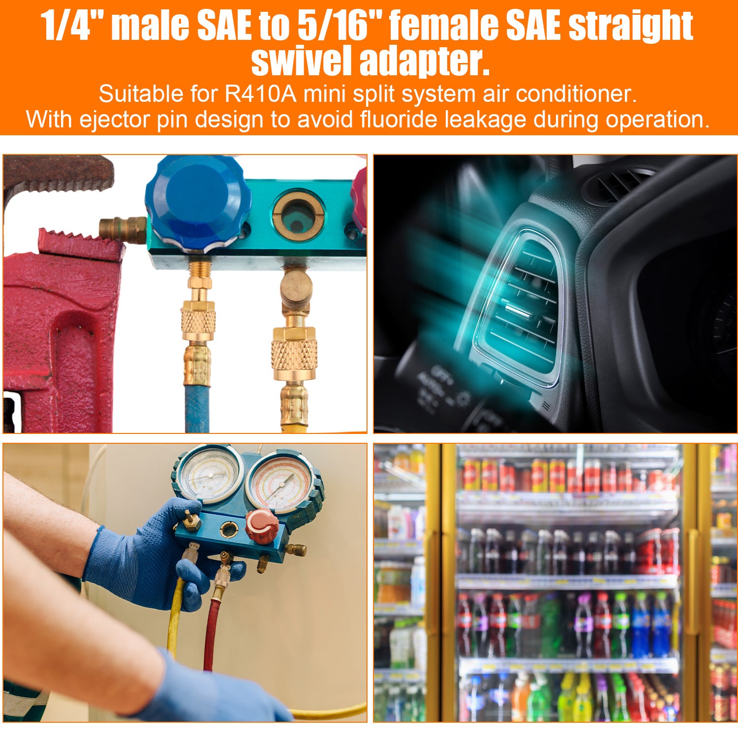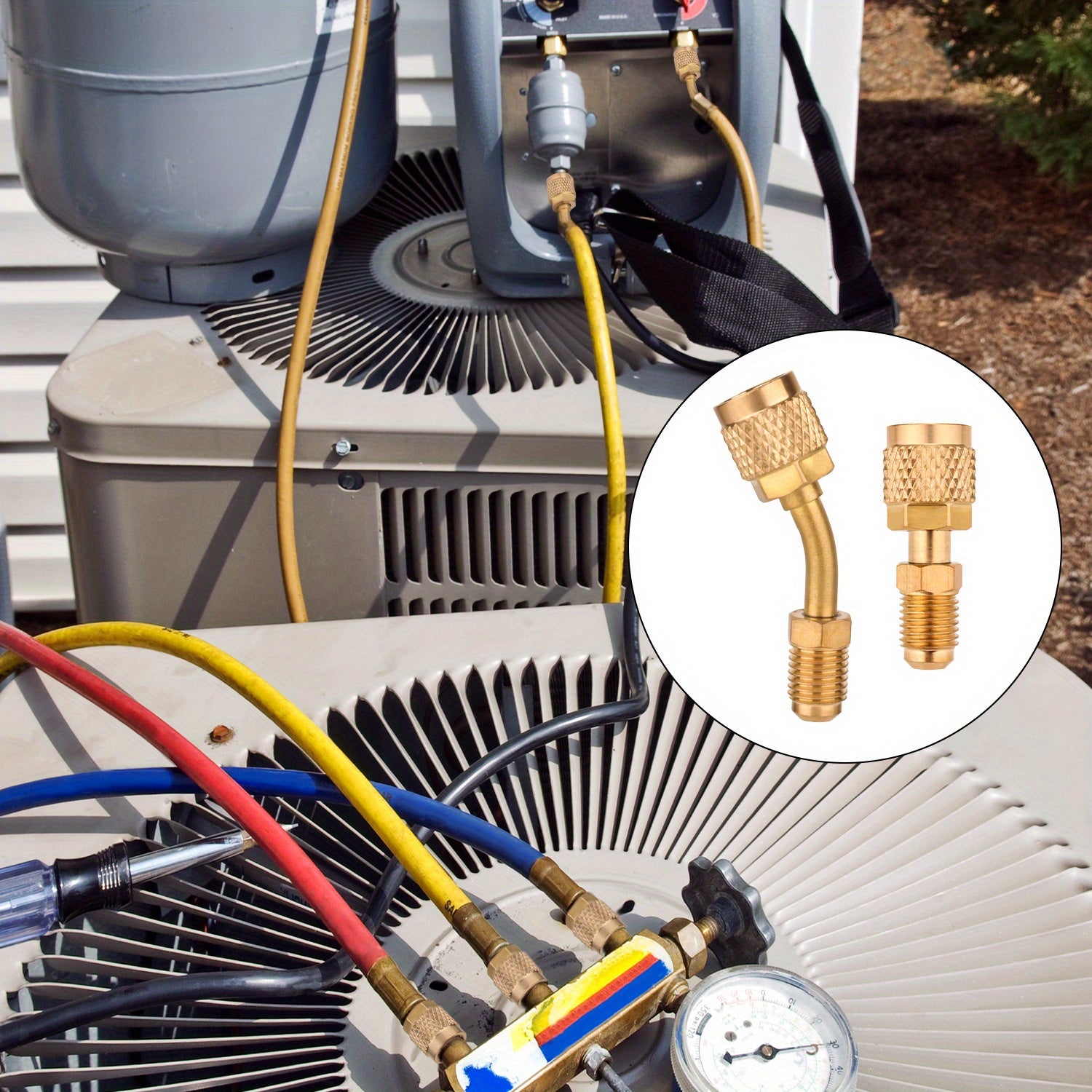 2 Adattatori Mini Split R410A - Adattatori di caricamento AC a flare da femmina da 5/16" a maschio da 1/4" con filettature SAE, costruzione in rame resistente per connessioni di sistema di condizionamento d'aria, accessori per condizionatori d'aria, desig