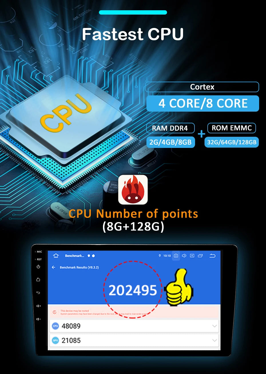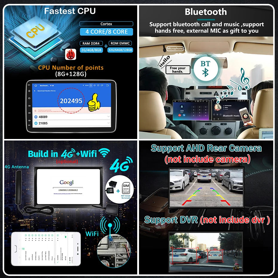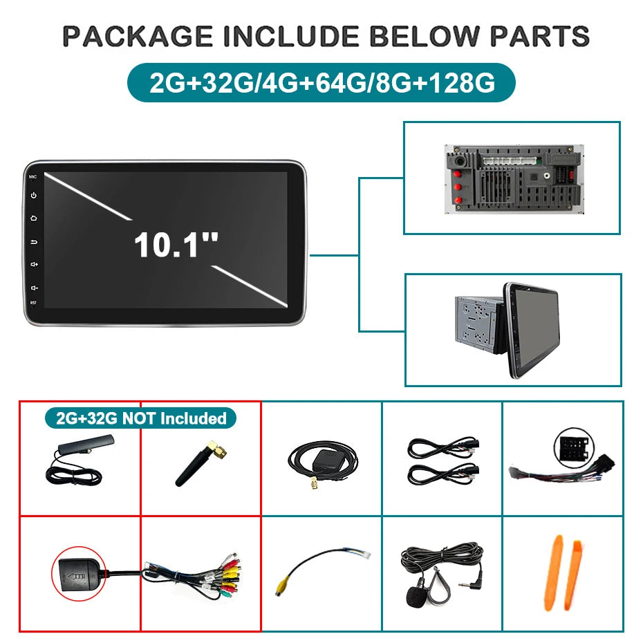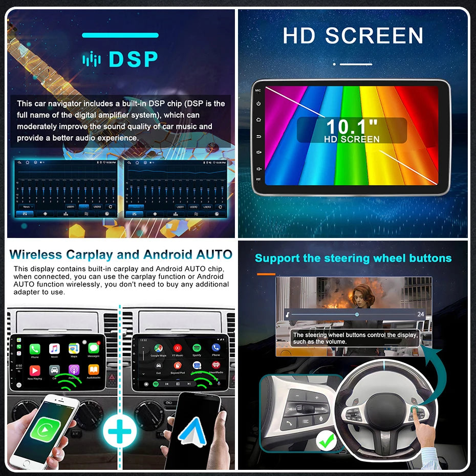 2 din Android 14 10.1 inch Universal Car Radio Stereo Rotate Touch Screen Wireless Carplay android auto GPS WIFI 4GLTE autoradio