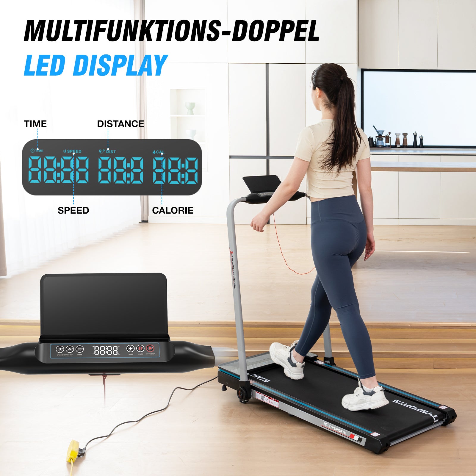 2-in-1 Tapis Roulant Pieghevole | Motore Silenzioso 1400W, Ammortizzazione, Fitness per Casa e Ufficio