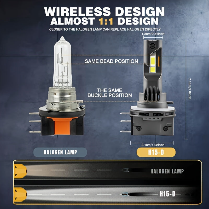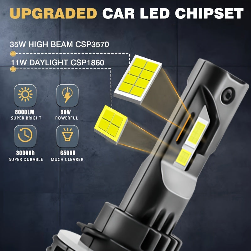 2 pezzi BRIEYES H15 LED DRL Lampadine per luci diurne, 8000LM 6500K Bianco freddo, Plug and Play Sostituzione fari abbaglianti, 12V Mini formato, Luci LED super luminose, senza batteria per veicoli a motore