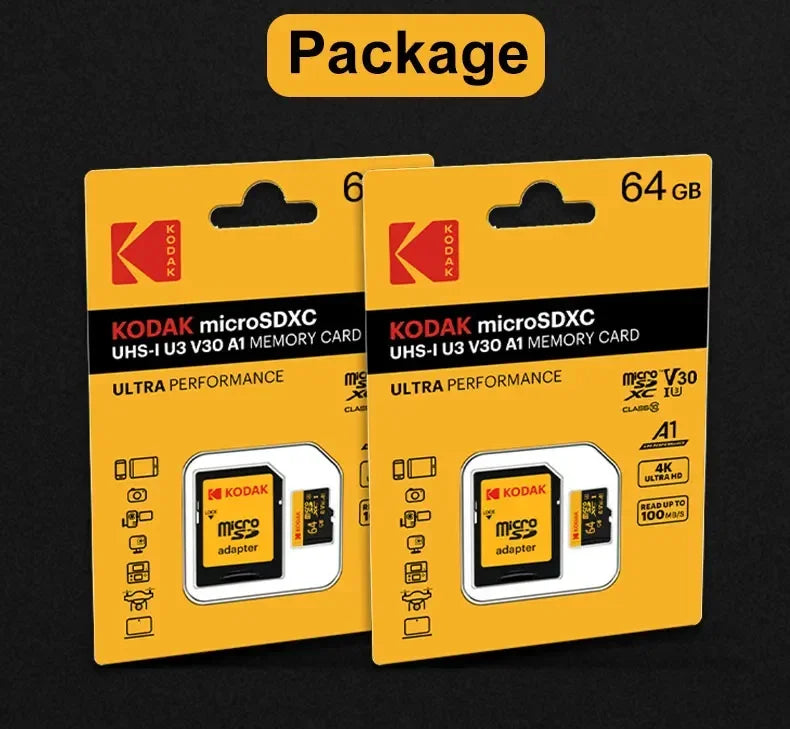 2 pezzi Kodak schede SD Micro TF originali 64 GB U3 V30 scheda Flash 4K scheda di memoria Full HD memoria TF per telefono/computer con adattatore SD