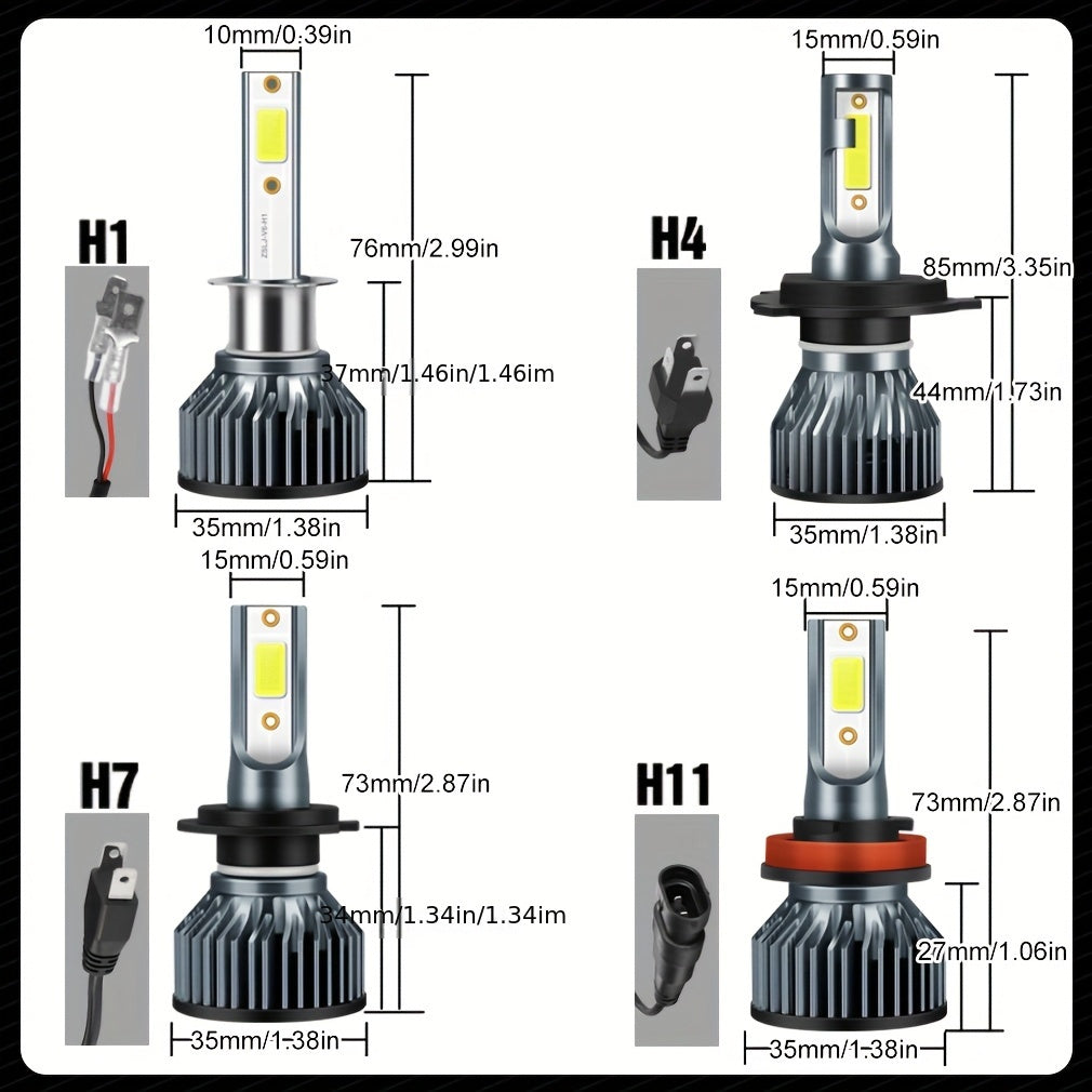 2 pezzi Lampadine Fari LED Super Luminose per Auto - Compatibili con H7, H1, H4, H8/H9/H11, Abbaglianti e Luci Antinebbia 6000K, 12V, Installazione Facile, Durata di oltre 50.000 Ore, Adatte a Tutti i Veicoli