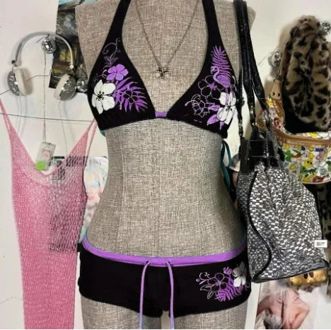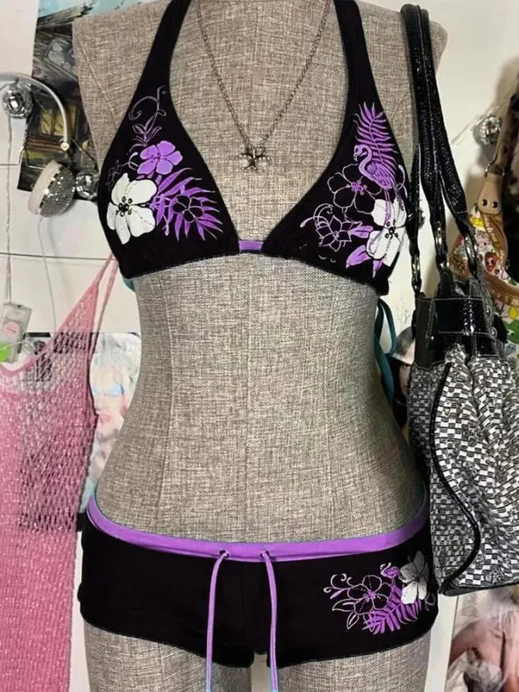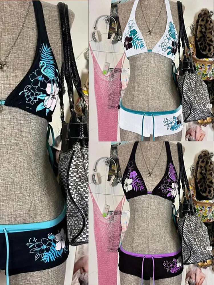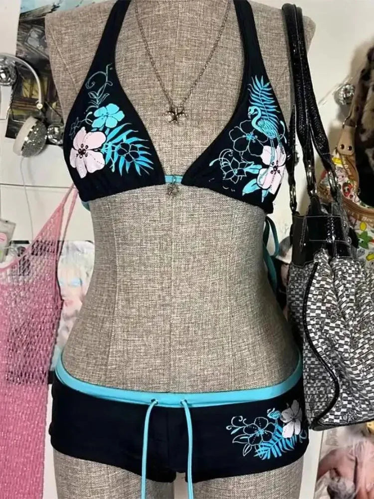 2 Piece Set Women Split Swimsuit Beach Bikini 2025 New Summer Swimwear Bikinis Set Sexy Hottie Print Laced Up Backless Bikini