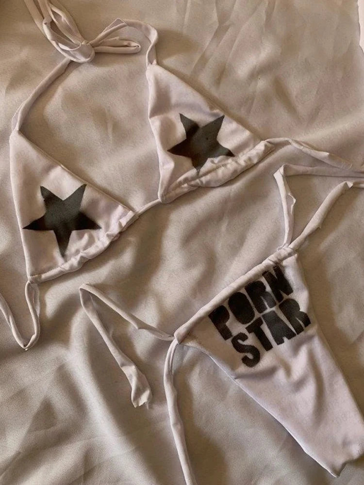 2000s Y2k letter print Gothic punk tight corset backless sleeveless hot and spicy Emo girl crop top summer bikini set beach emo