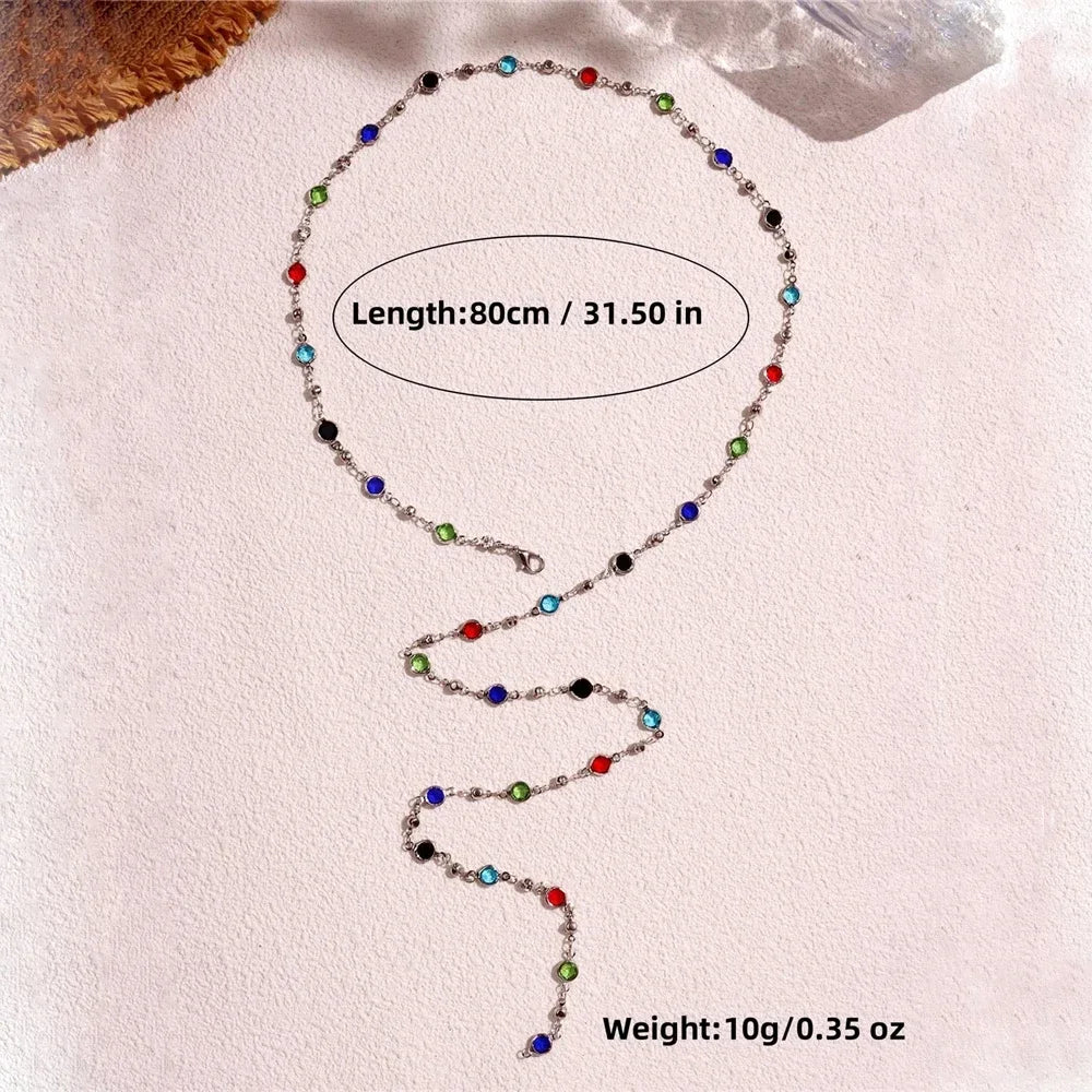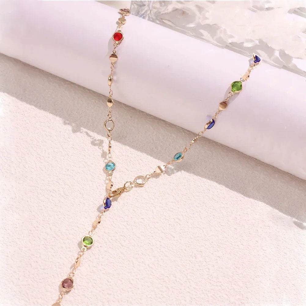 2024 Bohemian Colorful Long Y-Shaped Necklace Metal Collarbone Chain Gold Silver Color Summer Holiday Party Body Jewelry Gifts