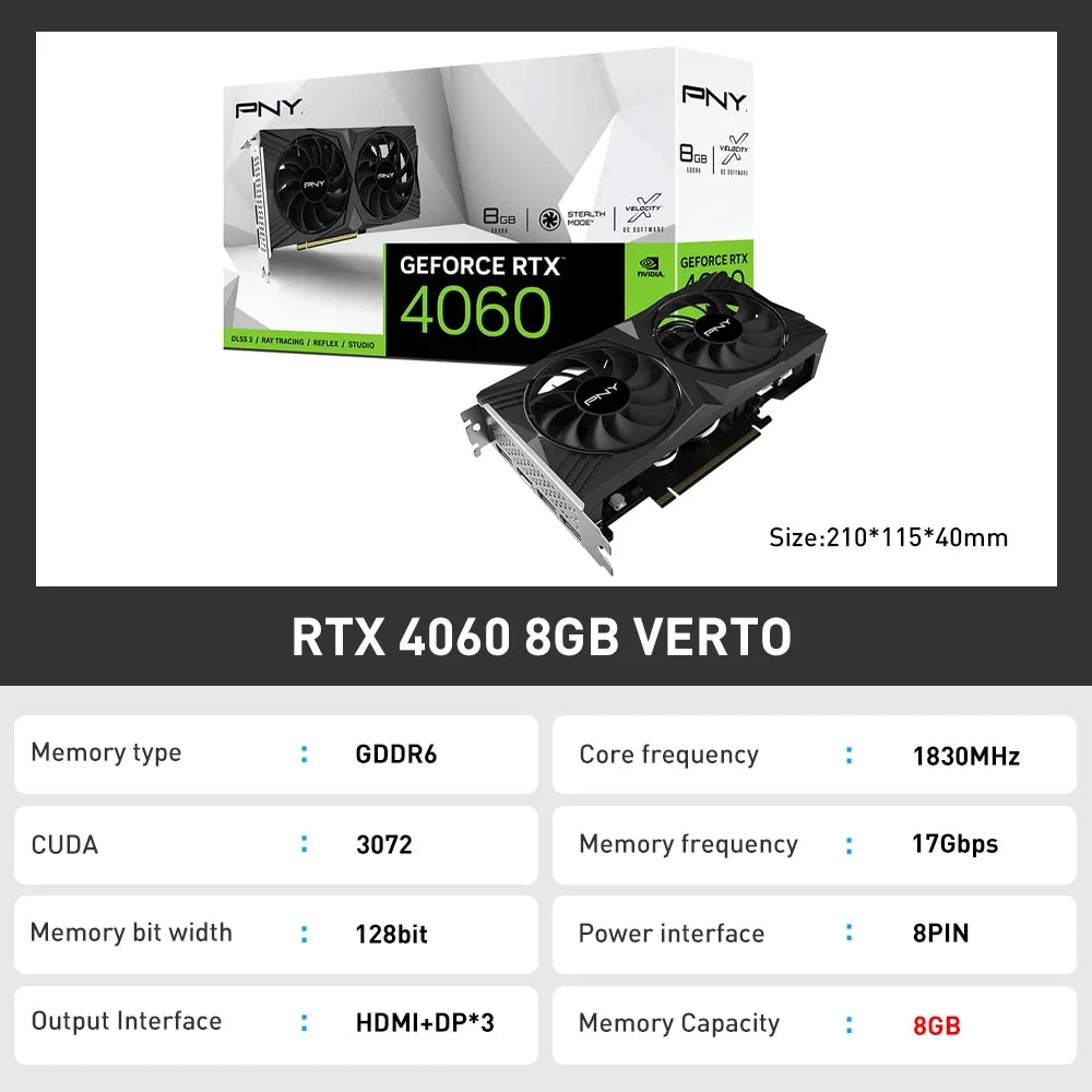 2024 USED GeForce RTX 4060 8GB Gaming VERTO Graphic Card GDDR6 Nvidia RTX4060 GPU Video Cards 8Pin 128Bit 4060 placa de vídeo