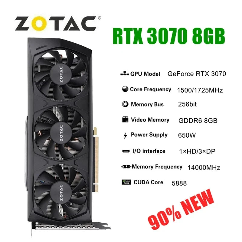 2024 Used ZOTAC GeForce RTX 3070 8GD6 Video Cards RTX 3070 8GB GDDR6 256bit GPU Graphic Card
