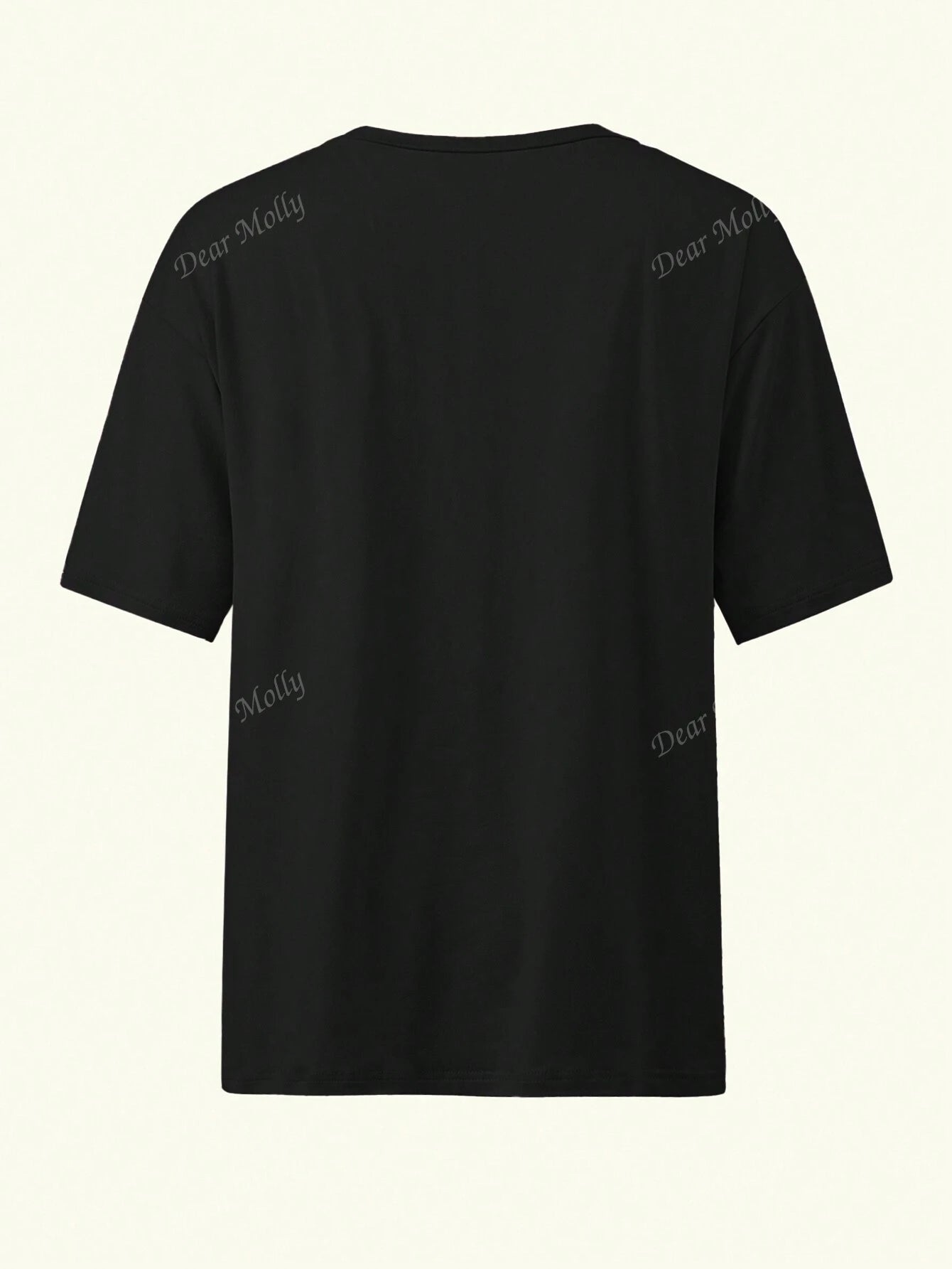 Sleeve Type:Regular SleeveHem Shaped:RegularLined For Added Warmth:NoPattern Type:Animal, Cartoon, Letter, Plain, SloganBody:UnlinedColor:BlackStyle:CasualNeckline:Round NeckSleeve Length:Short SleeveLength:LongFit Type:LooseFabric Elasticity:Slight StretchMaterial:PolyesterComposition:95% Polyester, 5%... Per saperne di più
