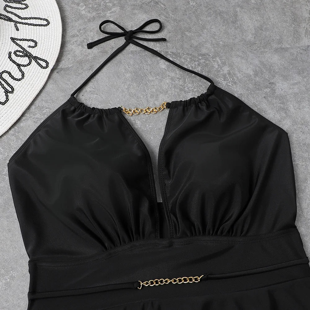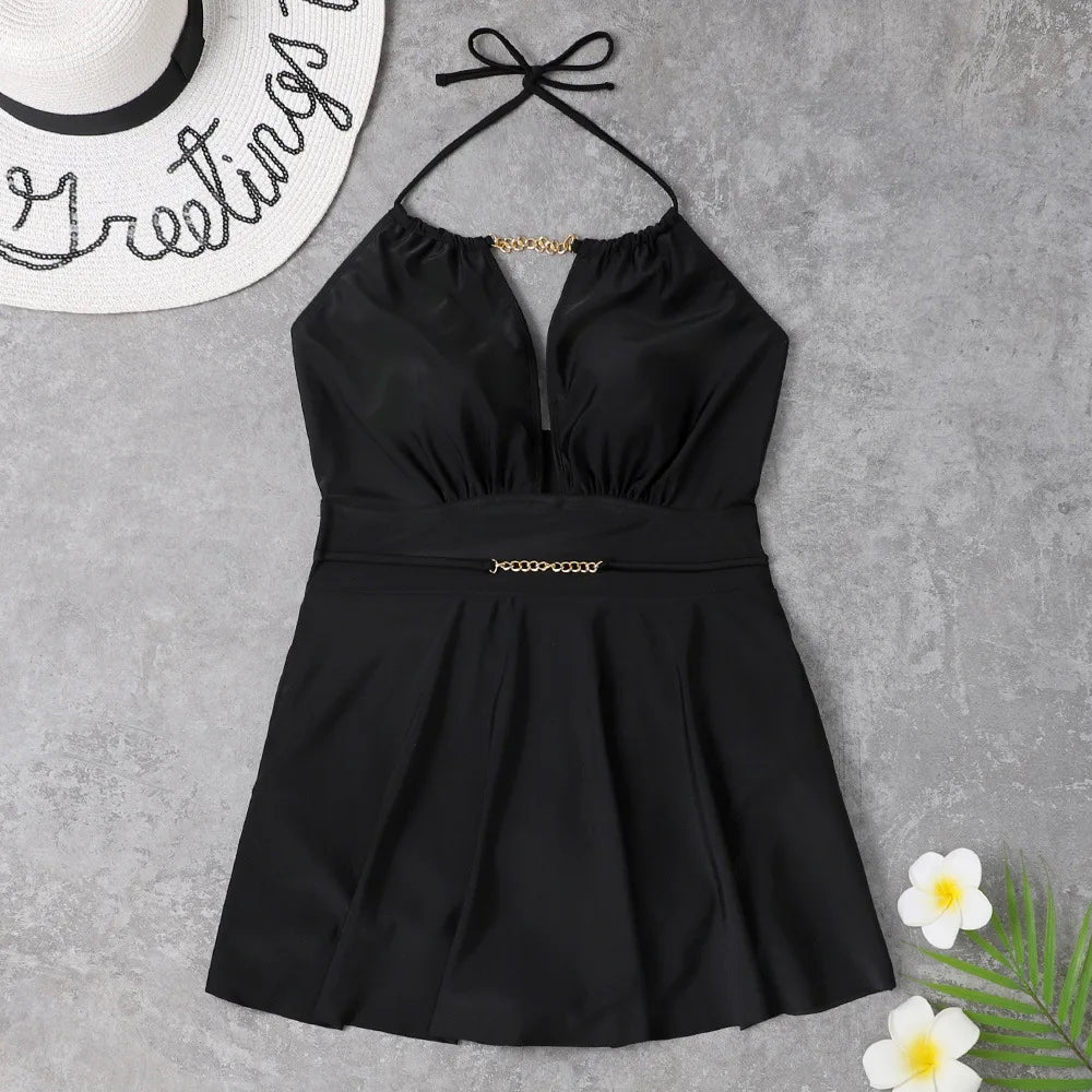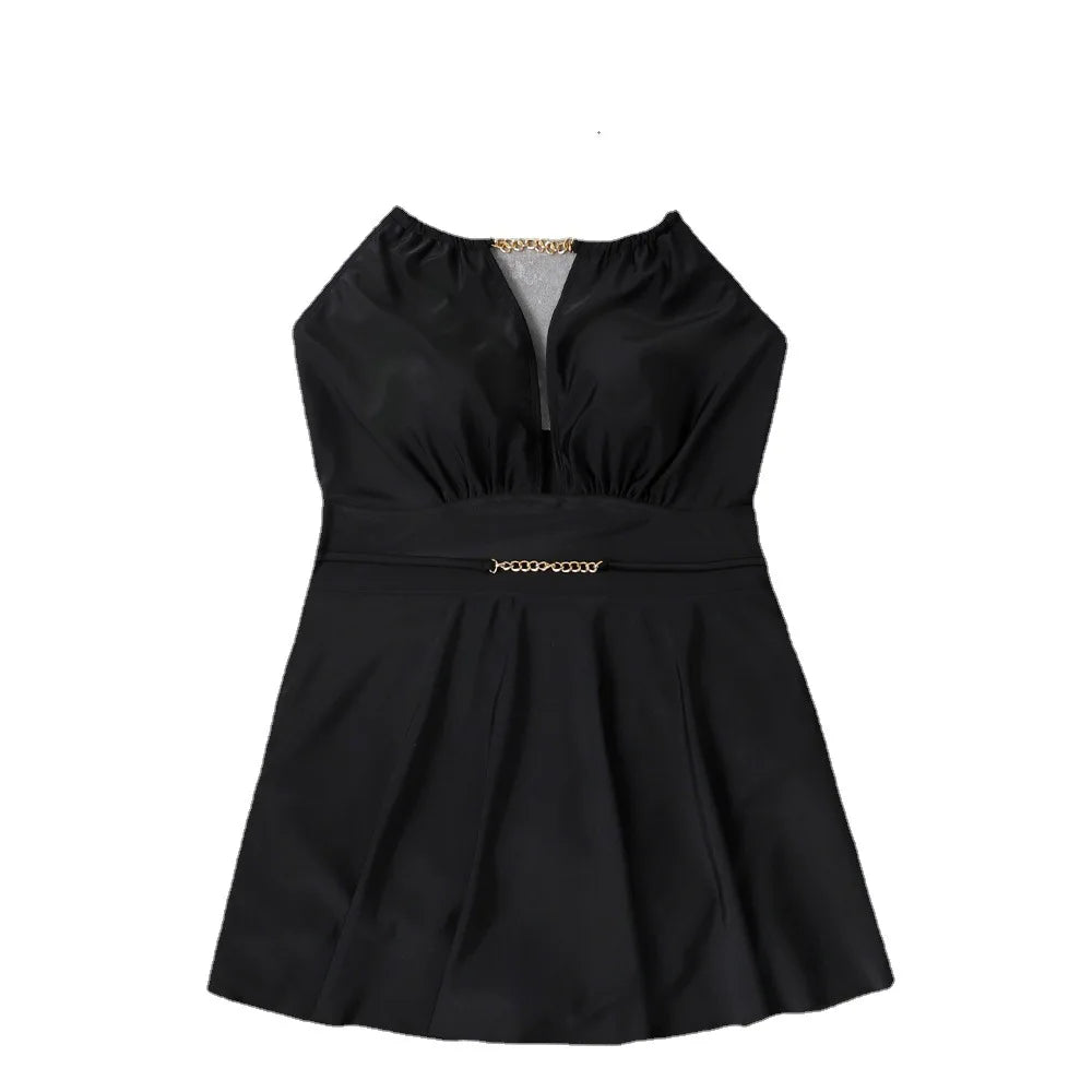 2025 New Large Size, Fattened and Enlarged One-piece Swimsuit, Solid Color Gathering Skirt Loose Beach Swimsuit Bikini Set