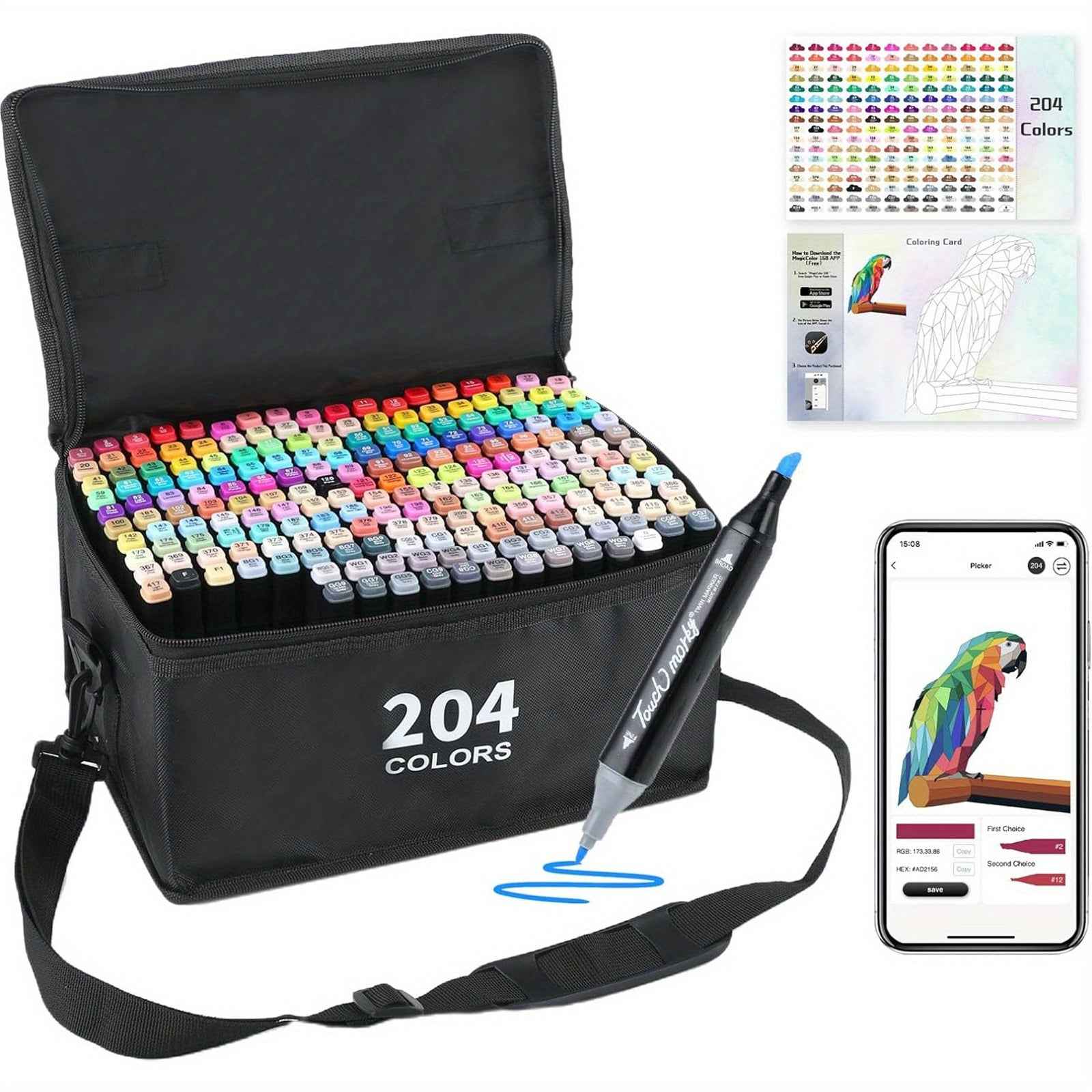 204 pennarelli a pennello e a punta fine - Punta media, non tossici, colori vibranti per dipingere, colorare, schizzare, disegnare - Regalo perfetto per artisti e principianti, pennarelli per l'arte, essenziali per il disegno, design a punta a pennello, c