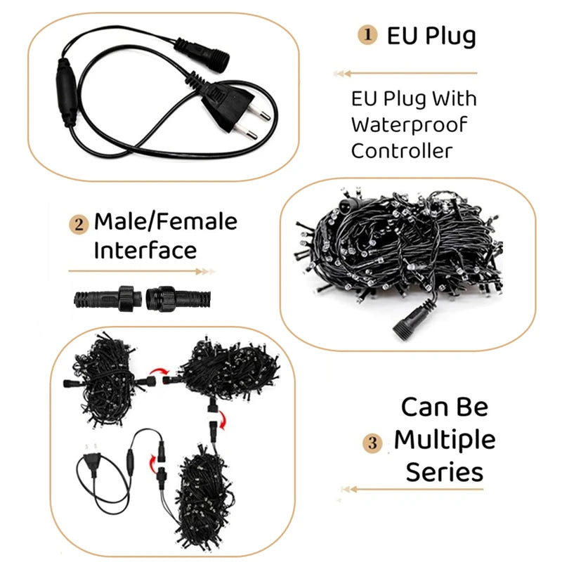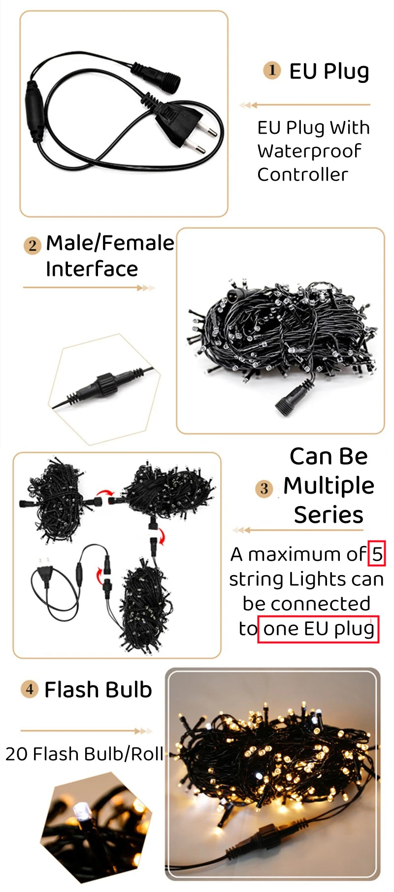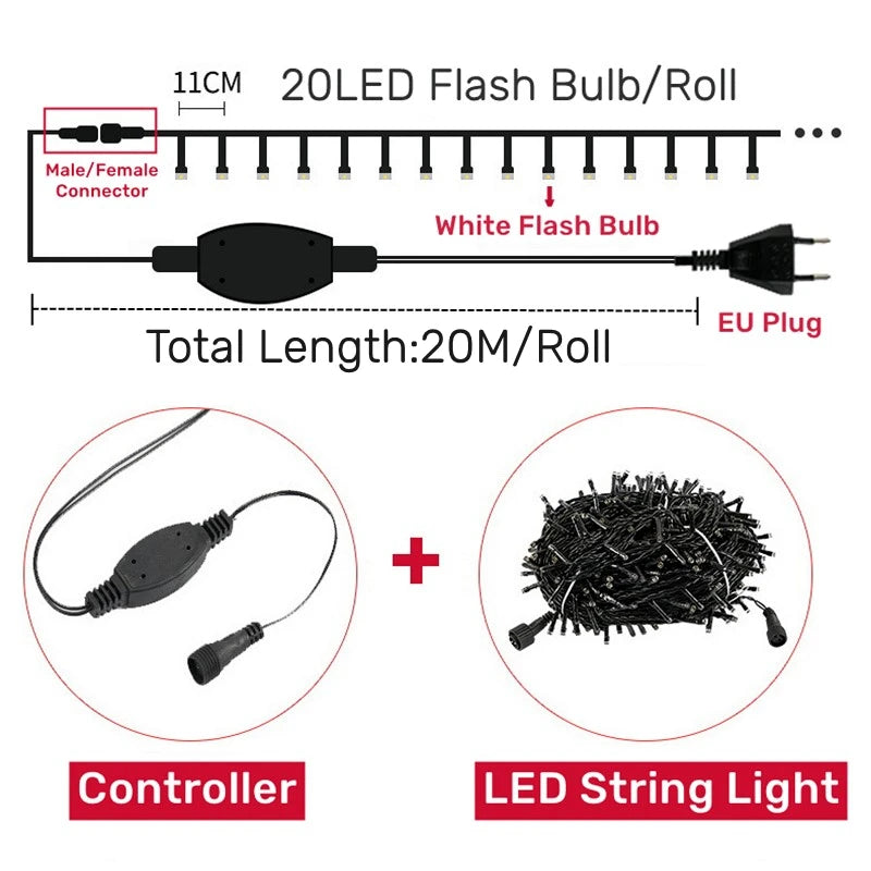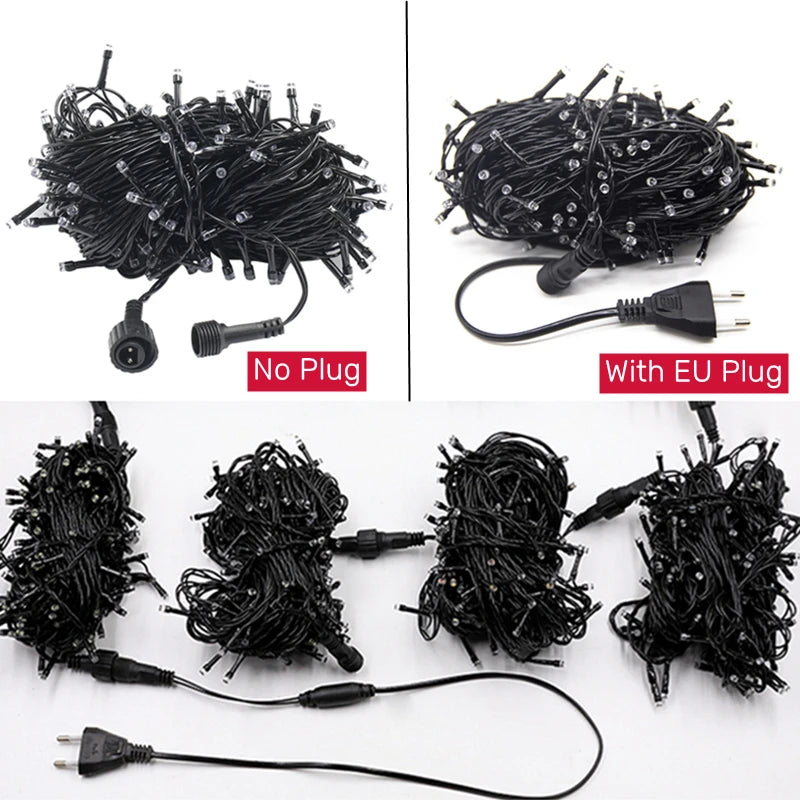 20M/Rotolo 200LED Esterno LED String Fata Luce Impermeabile Cavo Nero Spina UE Ghirlanda Lampada Natale Patio Decorazione del Giardino illuminazione