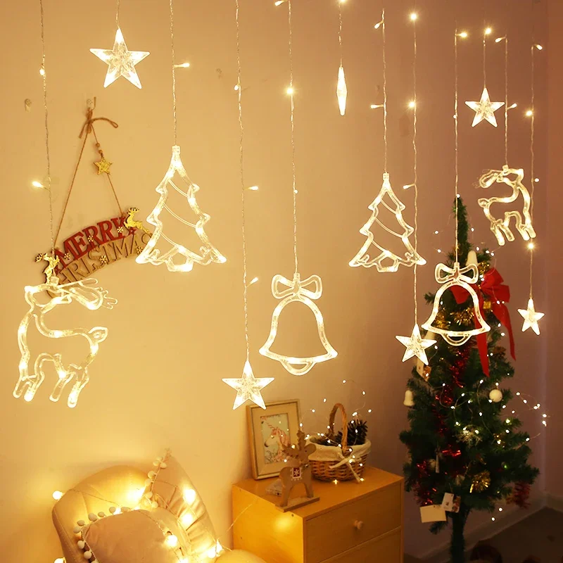 220V Spina UE Natale Cervo Campana Sta Tenda Luci della stringa LED Ghirlanda Lucine Decorazione natalizia per la decorazione della festa nuziale