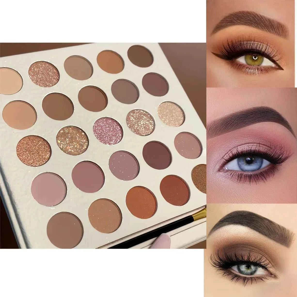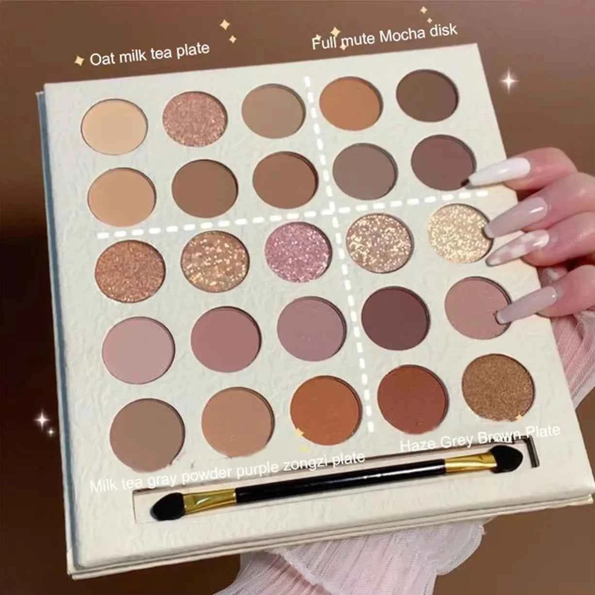 25-Color Eyeshadow Palette Earth Tones Matte & Shimmer Autumn Winter Low Saturation Orange Brown Makeup with Brush
