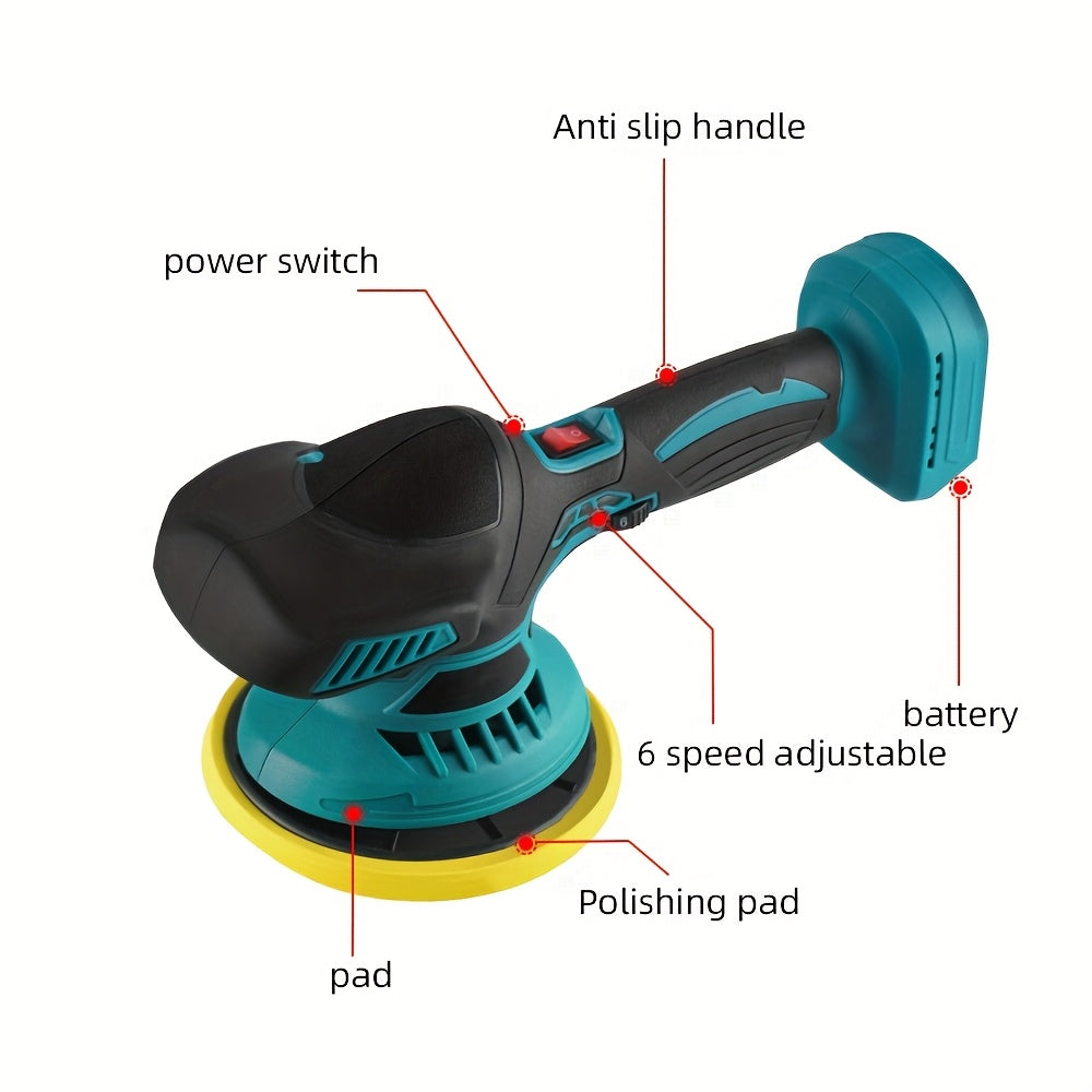 2500-7000 giri/min 1500mah * 5 Lucidatrice per auto senza fili con 2 batterie e 1 caricabatterie Lucidatrice senza fili Lucidatrice elettrica a 6 velocità Strumenti elettrici Adatti per lucidatura e ceratura