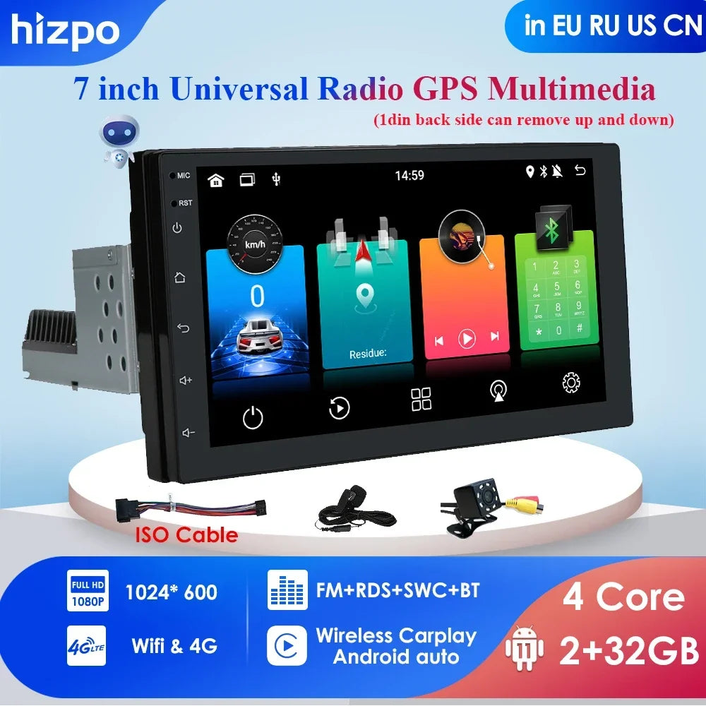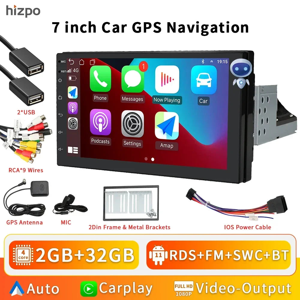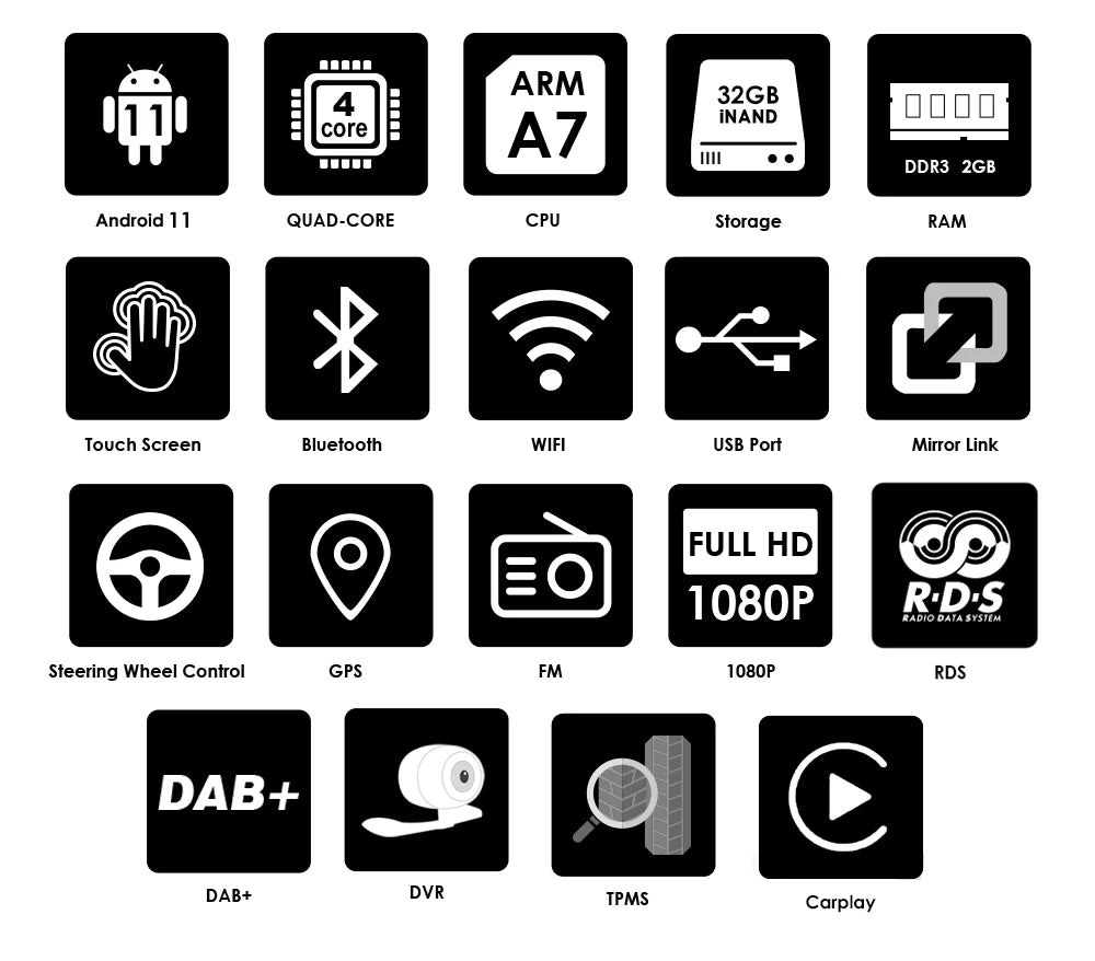 2G RAM 32G ROM NOCarplay: AD7004 with 1*ISO Cable,1*RCA Cable with 9 wires(supports Video Output),1*CAM-VIN wire,1*External Mic,2*USB wire,1*GPS Antenna,1 sets Metal Bracket,1*Front plastic frame.