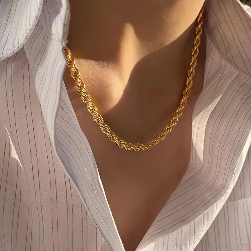 2mm-8mm Gold Color Twist Rope Chain Necklaces For Men Women Hiphop Stainless Steel Waterproof Chains Choker Necklace Jewelry
