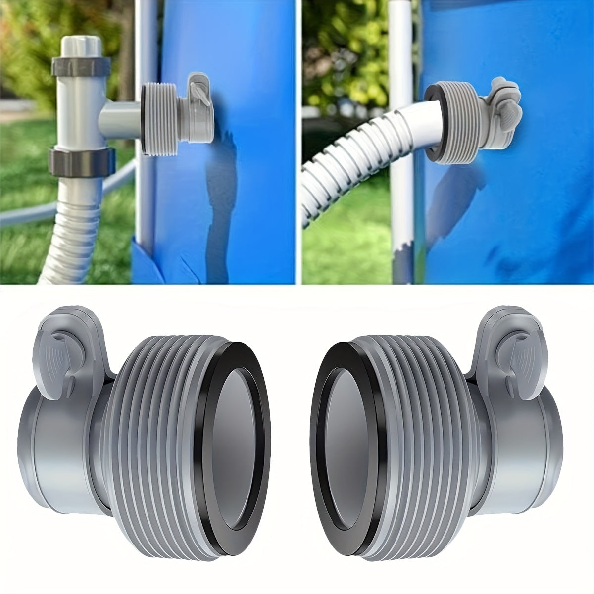 2pz Adattatore per Tubo Piscina in PVC Grigio, Tipo B da 3.17cm a 3.81cm con Morsetti di Sicurezza, Compatibile con Pompe a Filtro Intex - Parte di Ricambio Essenziale per Piscina per un Flusso d'Acqua Regolare, Controllo del Flusso d'Acqua | Connessione