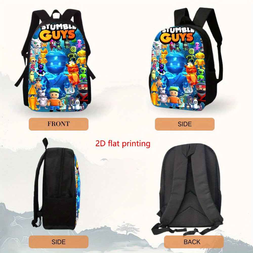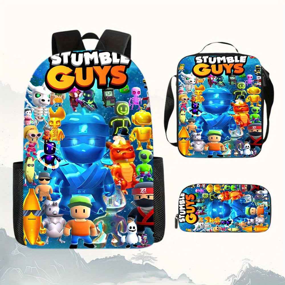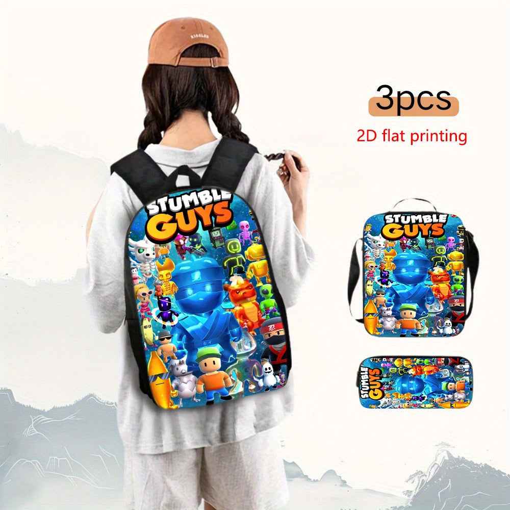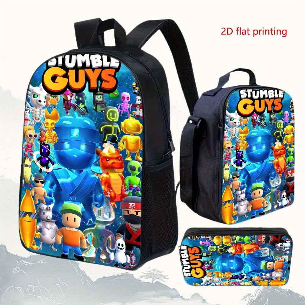 3 pezzi Borsa a tracolla Stumble Guys 2D stampata, borsa messenger capiente per scuola e viaggi leggera con cerniera, regolabile, ideale per pendolarismo ed escursioni, design piatto 2D