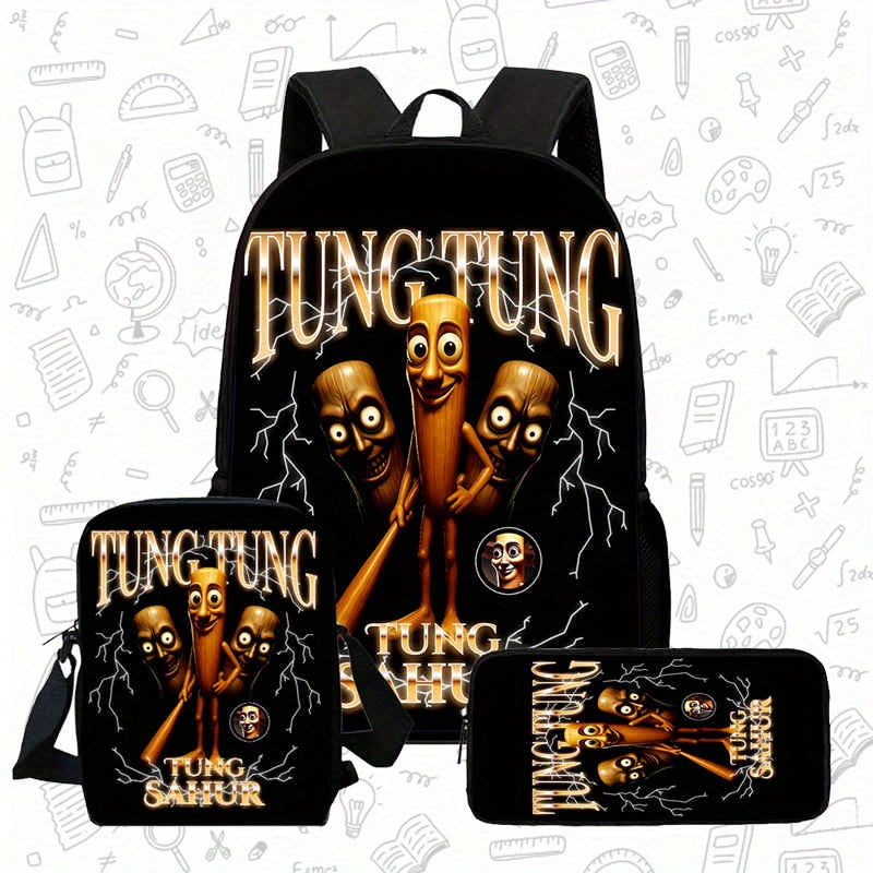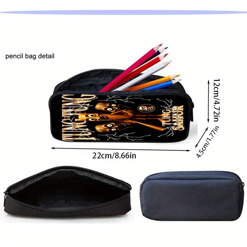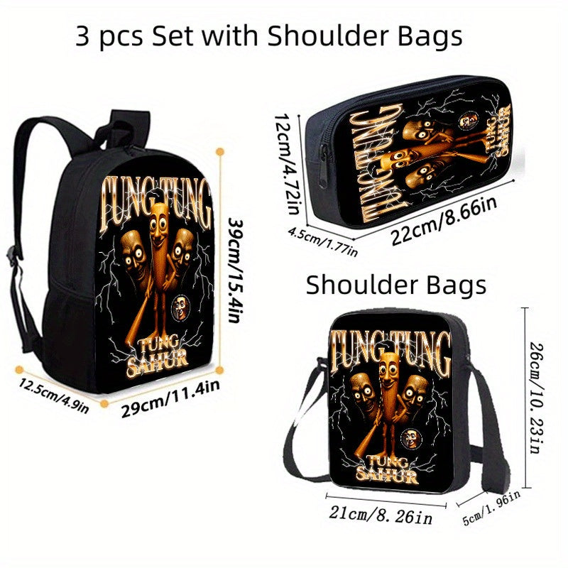 3 Pezzi Set Zaini Unisex, Stile Fashion con Cinghia Regolabile e Chiusura a Zipper, Completo di Zaino, Borsa a Tracolla e Astuccio per Matite, Design per Scuola, Viaggi e Campeggio