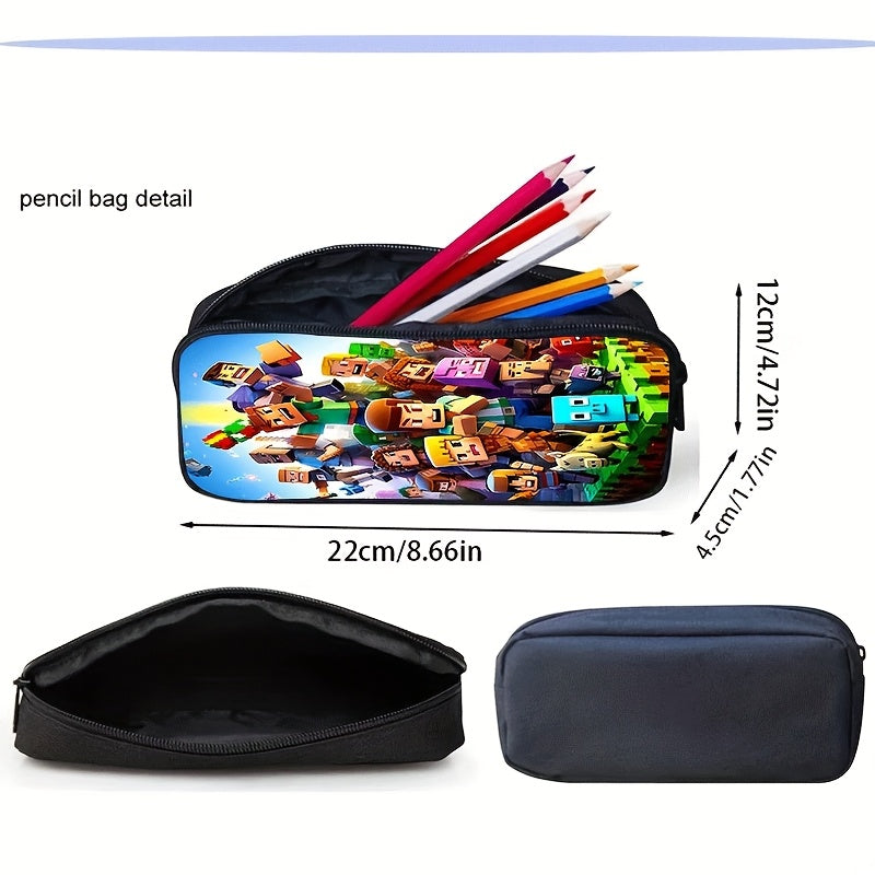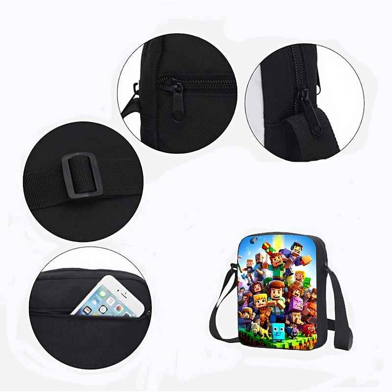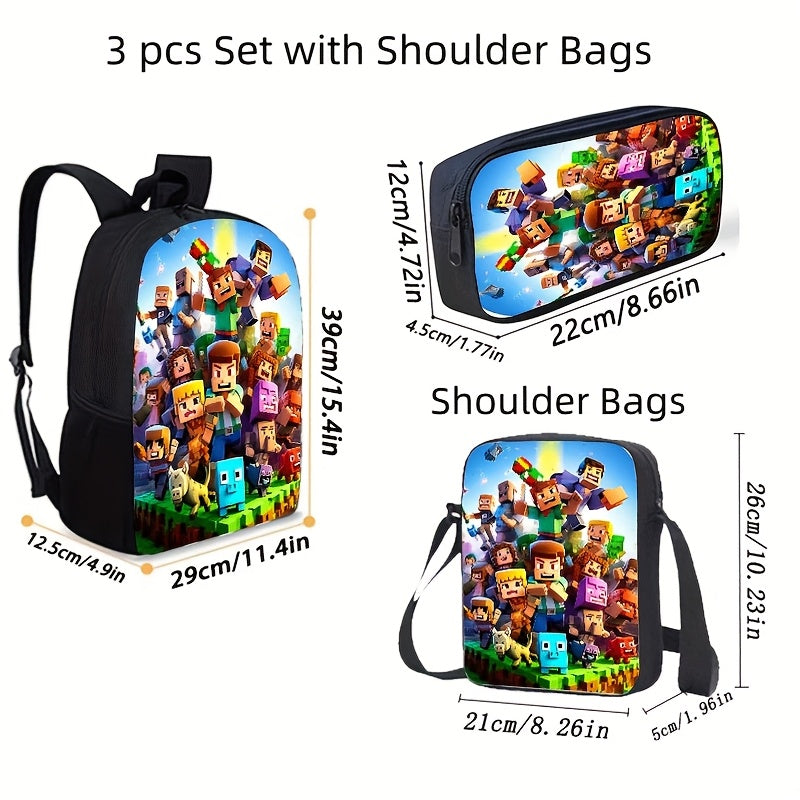 3 Pezzi Set Zaini Unisex, Stile Fashion Mini-Craft, con Cinghia Regolabile e Chiusura a Zipper, Include Zaino, Borsa a Tracolla e Astuccio per Matite, Design per Scuola, Viaggi e Campeggio