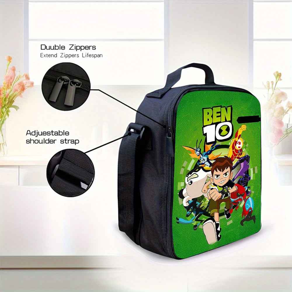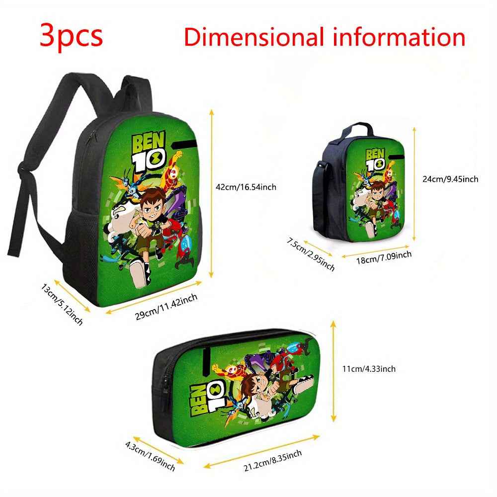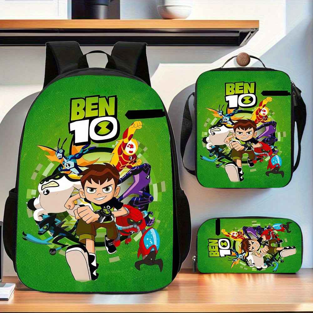 3 Pezzi Set Zaino Ben 10, 1*Borsa Pranzo, 1*Astuccio Portapenne, Grande Capacità Organizzatore da Viaggio con Chiusura a Cerniera, Ideale per Regali di Vacanza o Compleanno