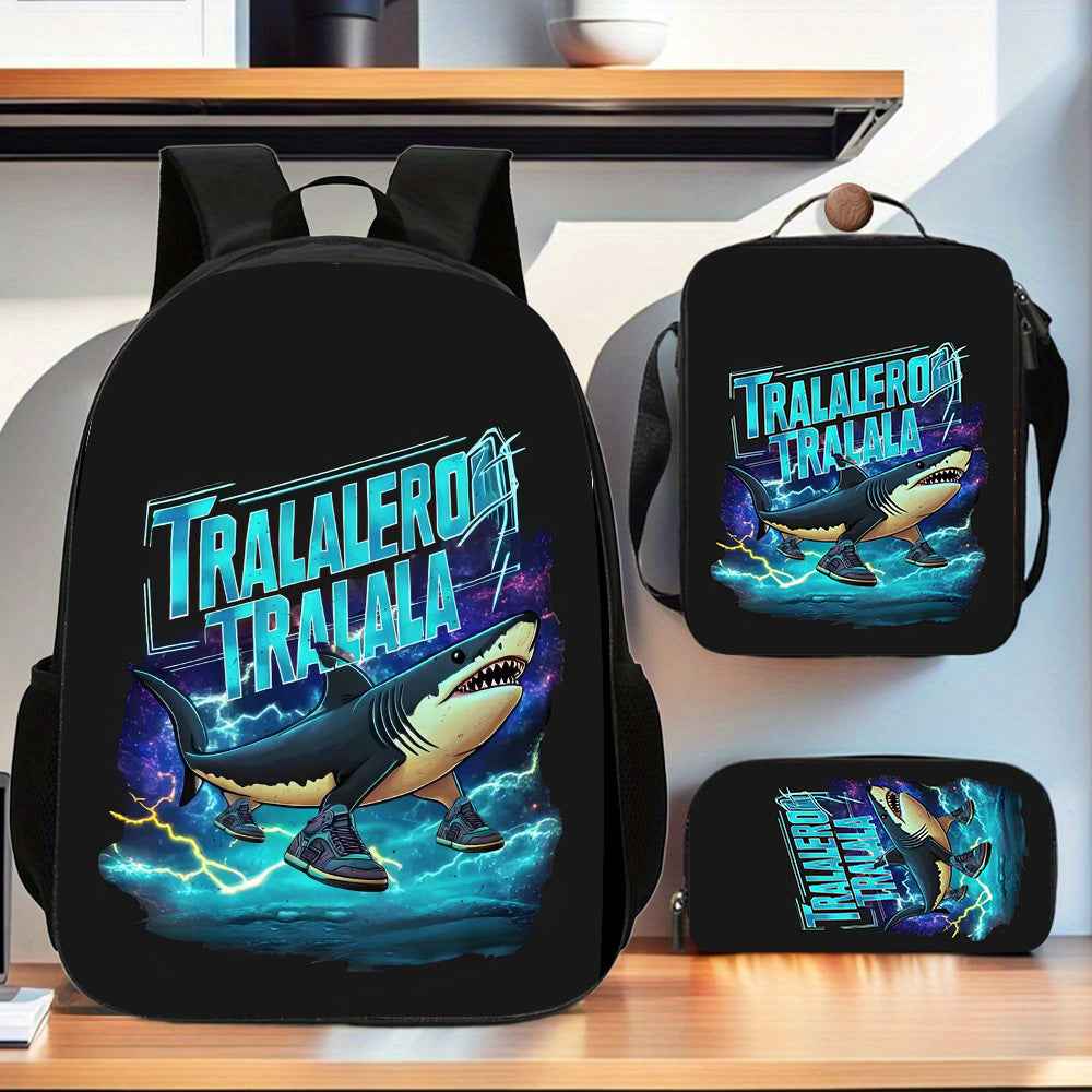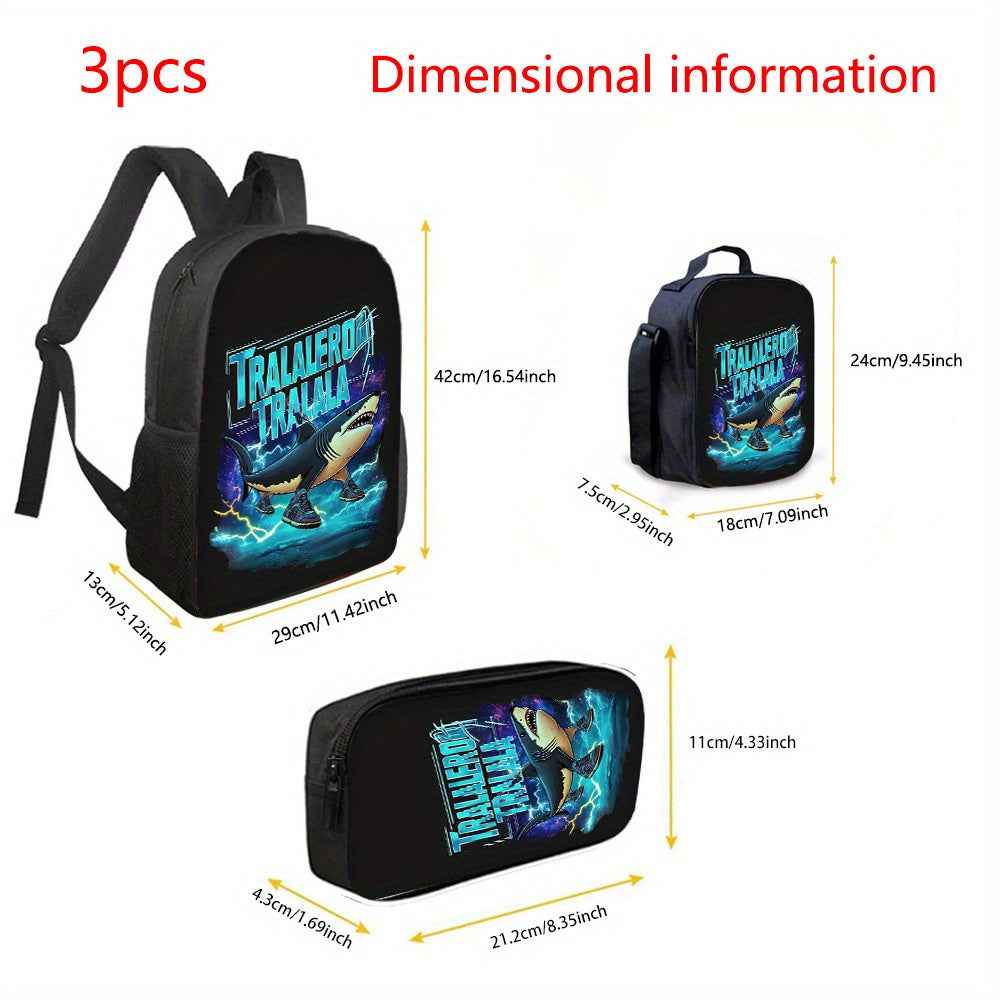 3 Pezzi Tralalero Tralala&Italian Brainrot Set Zaino, Borsa in Poliestere per Uomini e Donne, 1*Borsa Pranzo, 1*Astuccio Portapenne, Spallacci Regolabili, Doppie Cerniere, Ideale per Pendolarismo, Viaggi e Attività All'Aperto