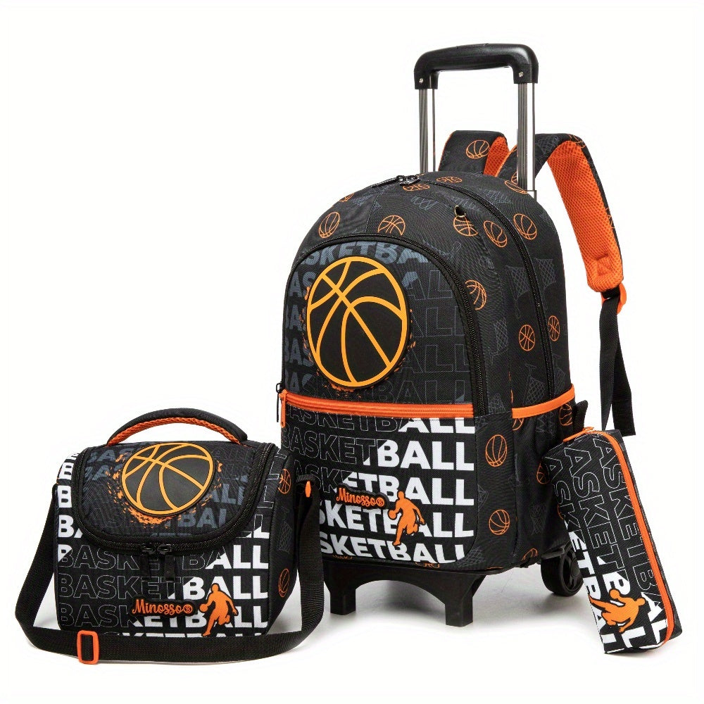 3 Pezzi Zaino con Ruote per Ragazzi 15 POLLICI, Borsa da Viaggio con Portapranzo e Astuccio Regalo Ideale per il Ritorno a Scuola