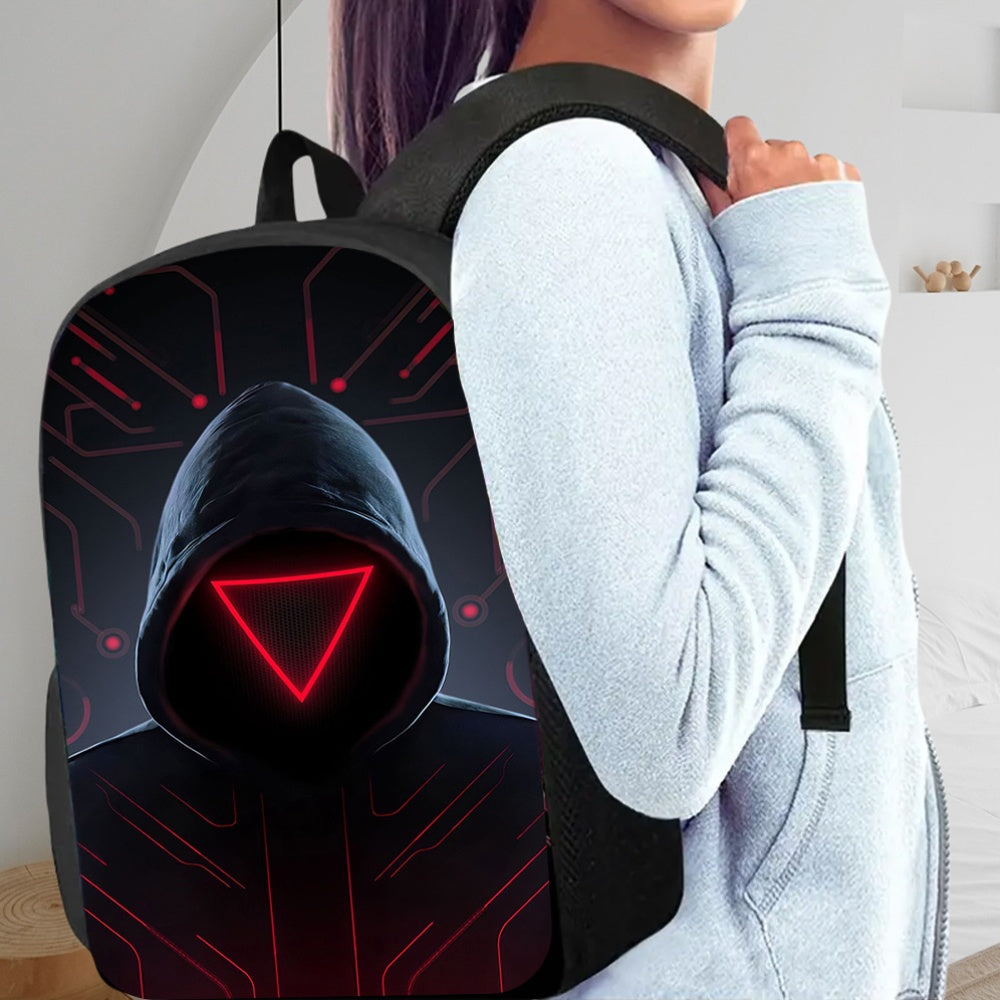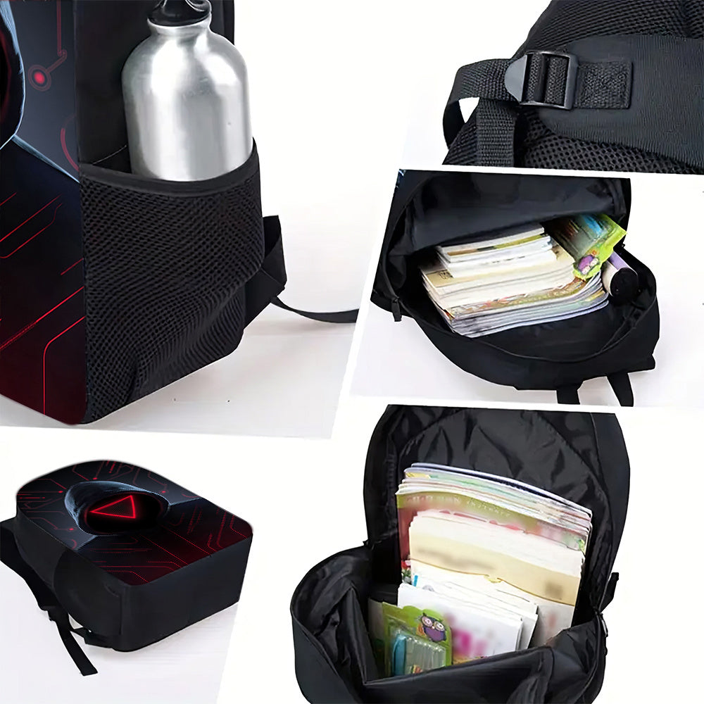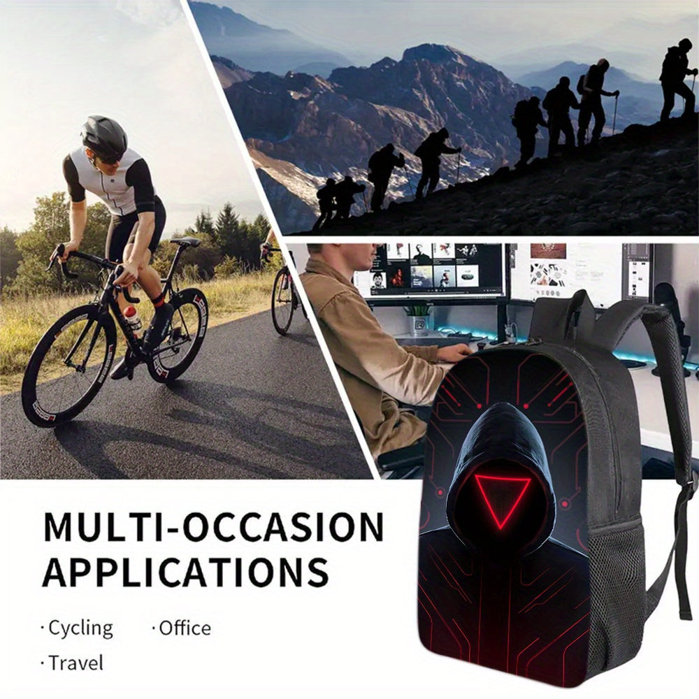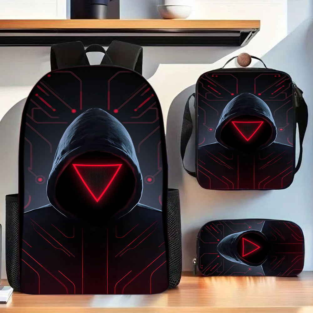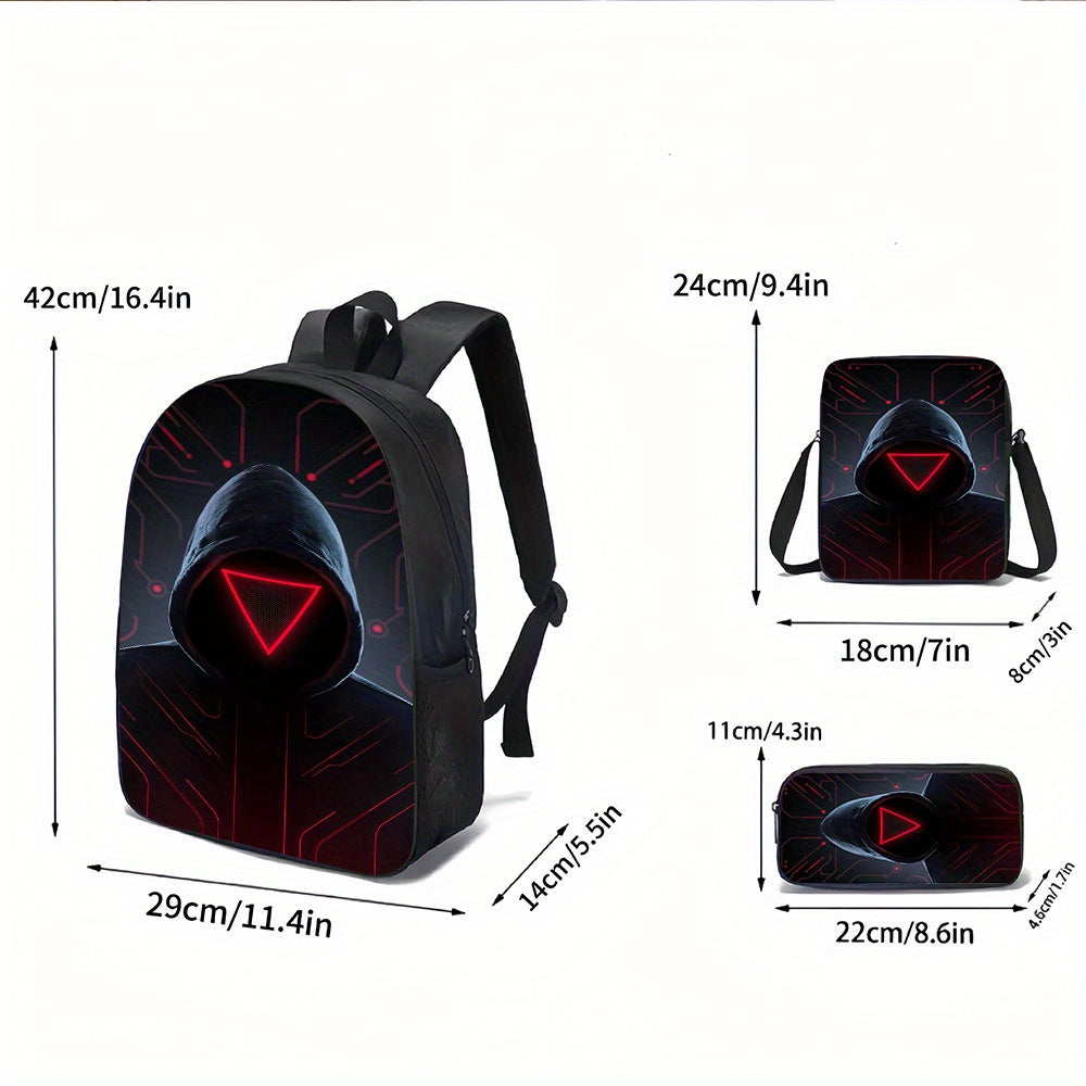 3 Zaini Unisex ispirati ai giochi con un design di personaggi con cappuccio cool - Borsa per laptop di grande capacità, set di penne e scatola per il pranzo, poliestere resistente, lavaggio a mano solo - Perfetto per il viaggio quotidiano, la scuola o il