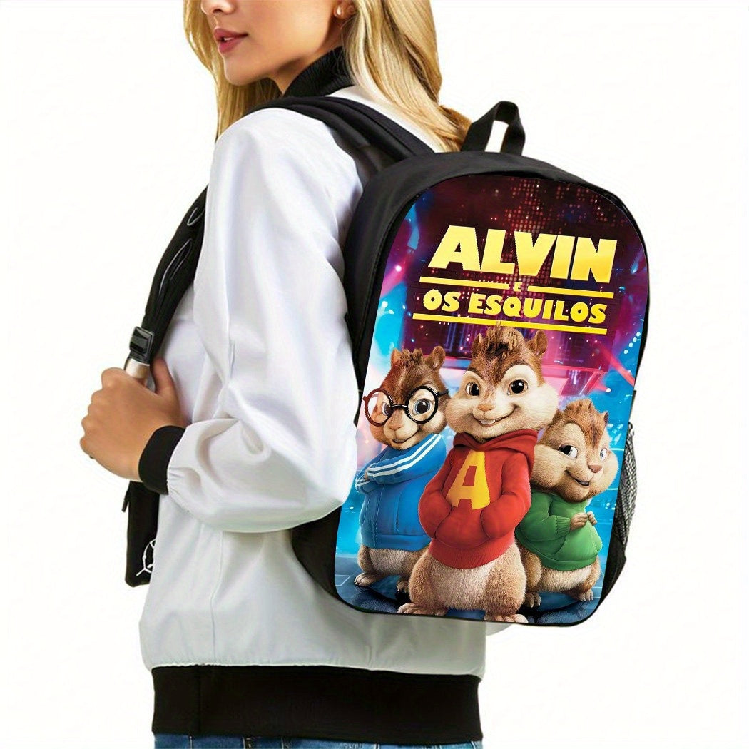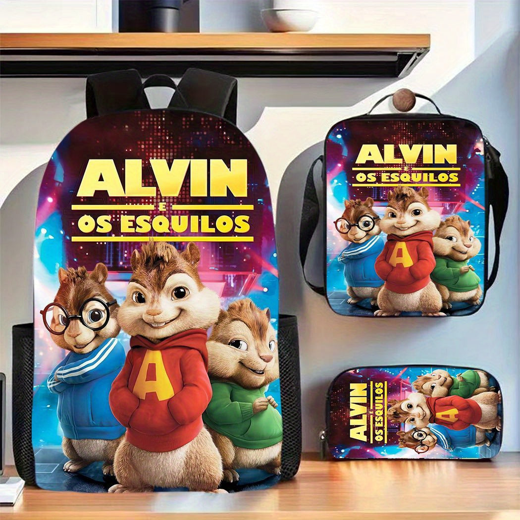 3pcs Alvin & the Chipmunks Backpack Set - Unisex School Bags con Pencil Case & Lunch Box, Oxford Fabric leggero, Cinghie regolabili, Lavabile a mano - Perfetto per Commuting & School, School Bag, Lunchbox, Design giocoso, Chiusura a cerniera resistente