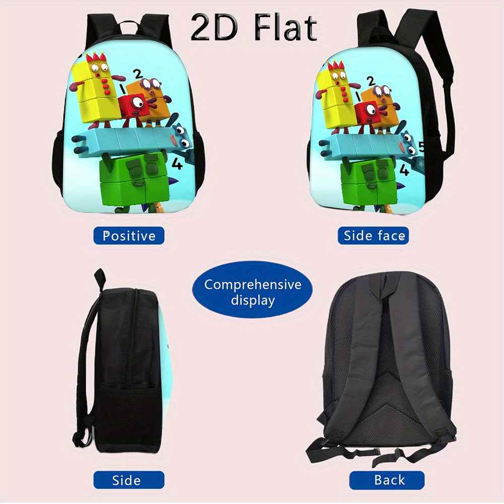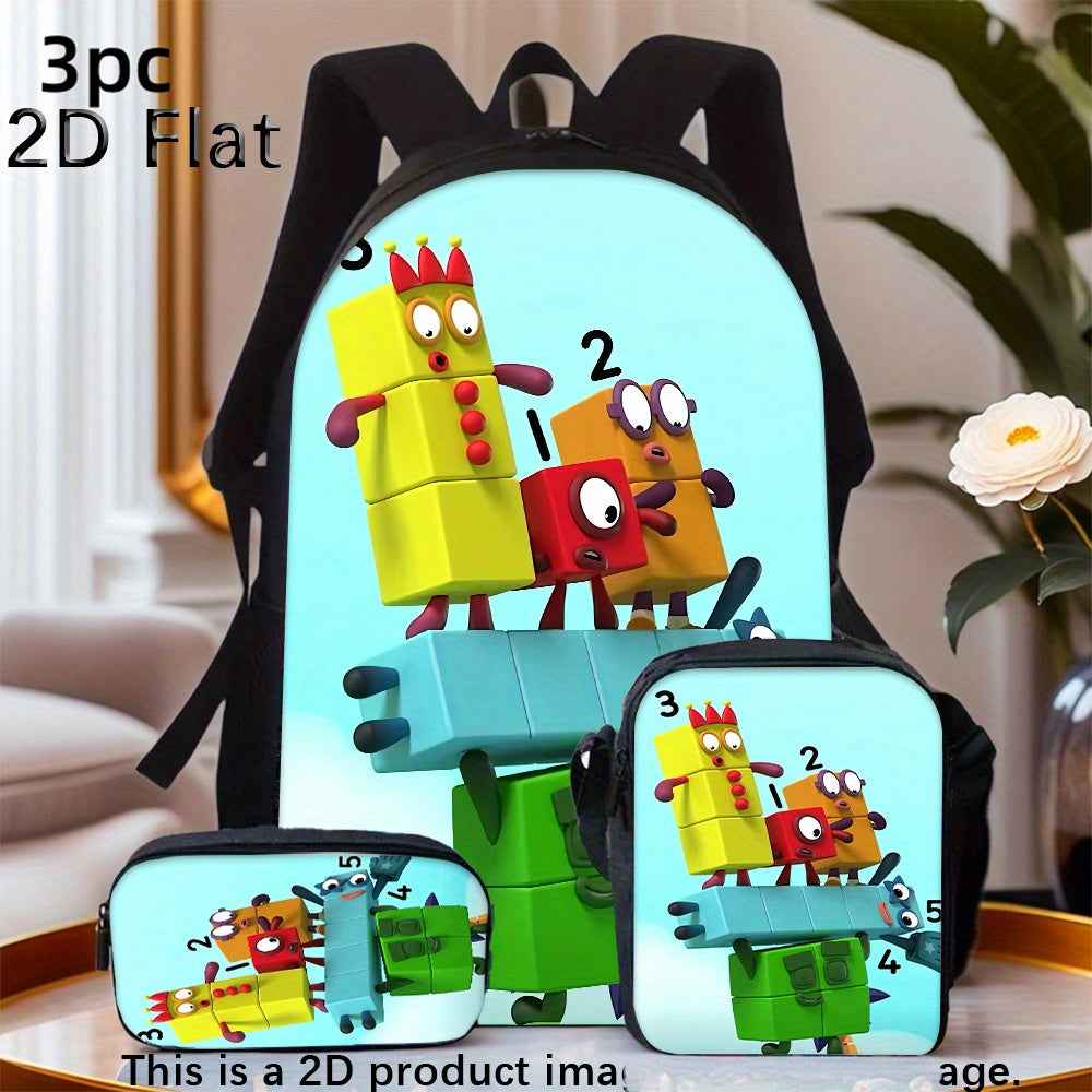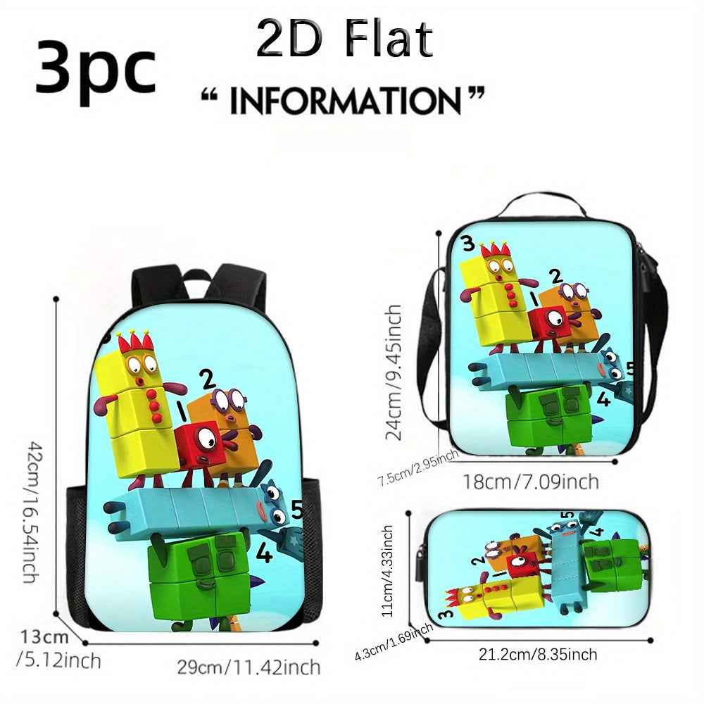 3pcs Set Zaino Numberblocks Include uno Zaino di Grande Capacità, una Penne e un Borsa Pranzo con Cerniera e Spalline Regolabili, Un'ottimo Regalo per Viaggi e Pendolarismo