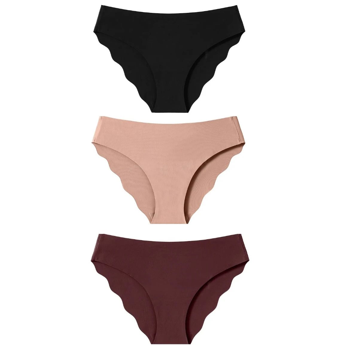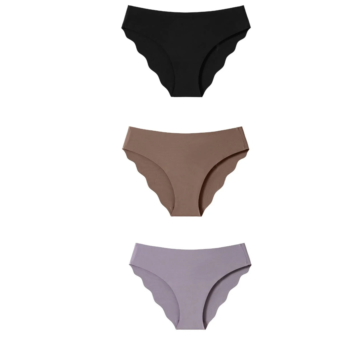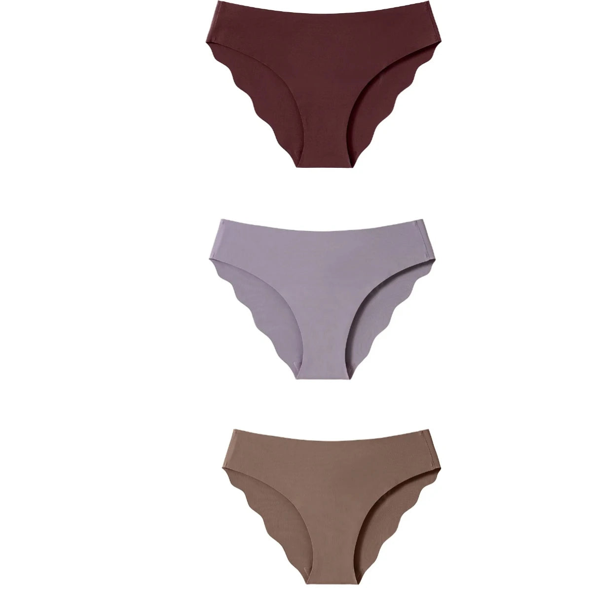 3pcs Women's Sexy Breathable Ice Silk Invisible Seamless Sports Yoga Bikini Panties Plus Size Wave Trim