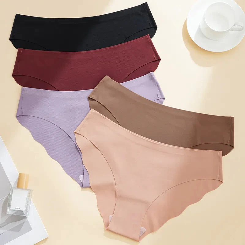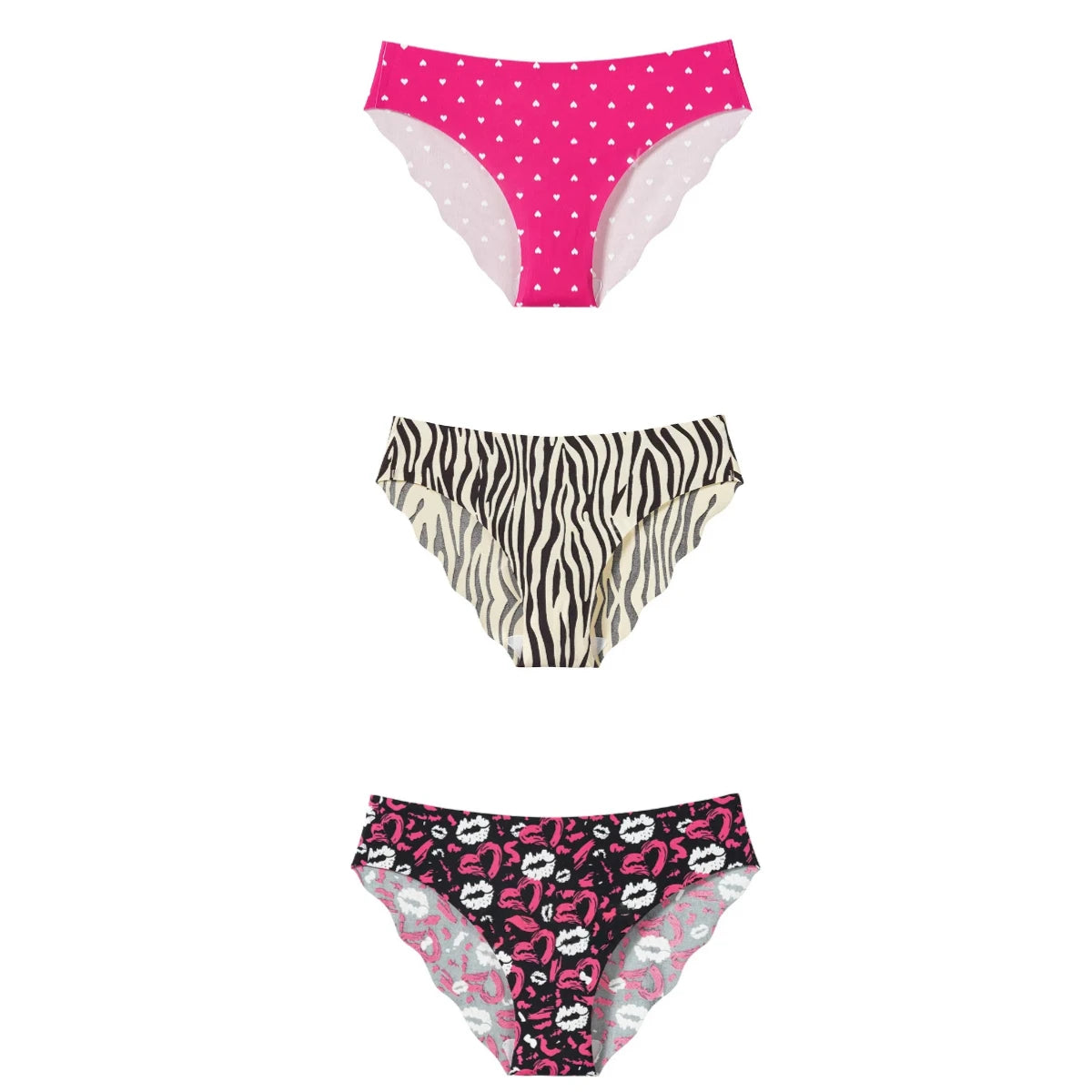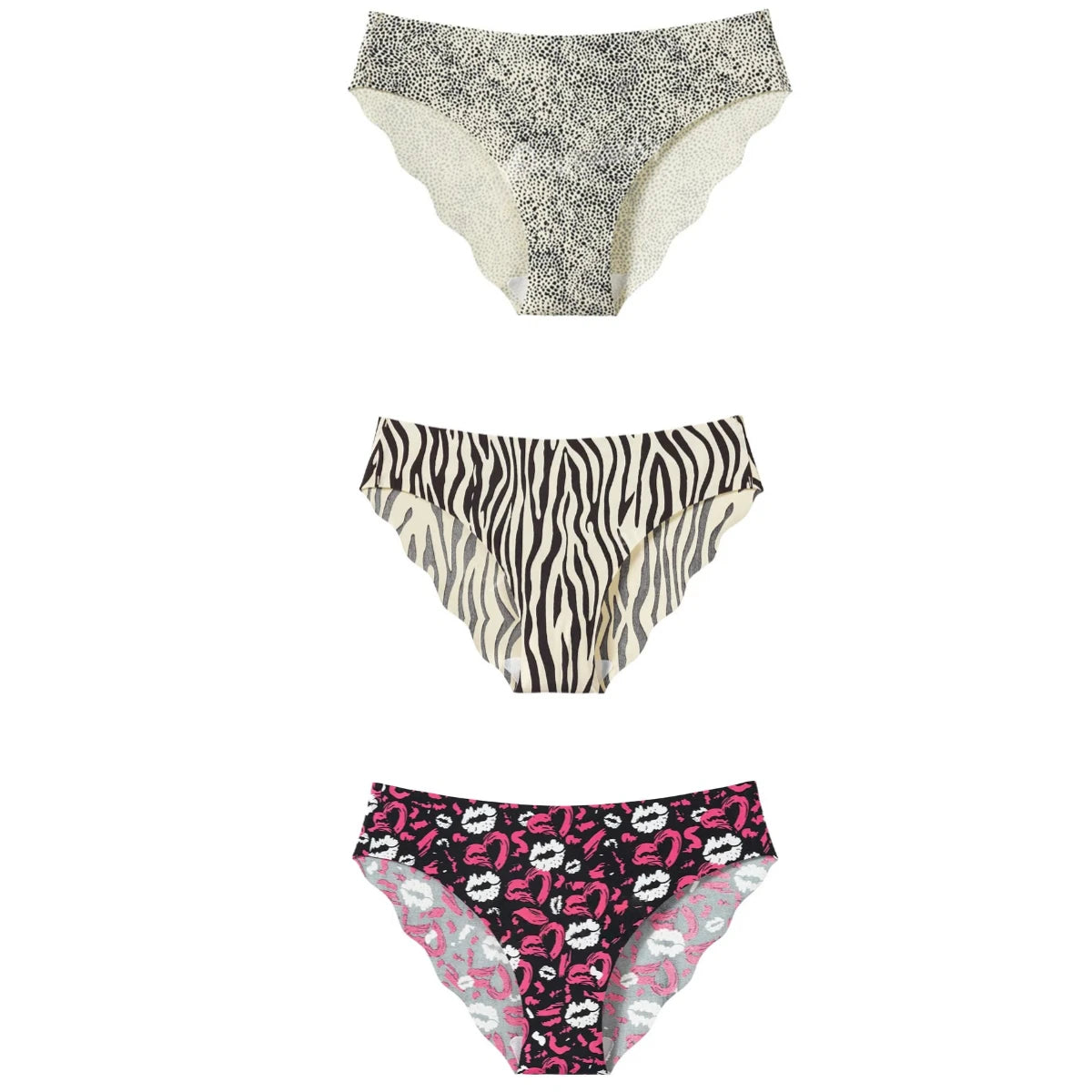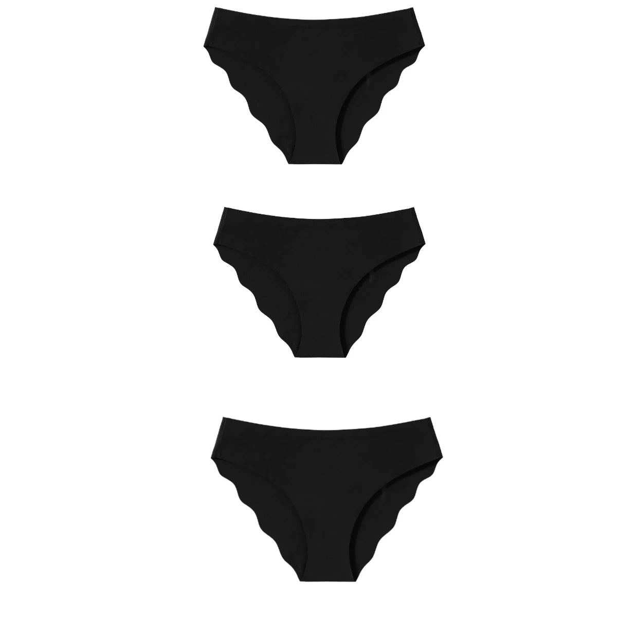 3pcs Women's Sexy Breathable Ice Silk Invisible Seamless Sports Yoga Bikini Panties Plus Size Wave Trim