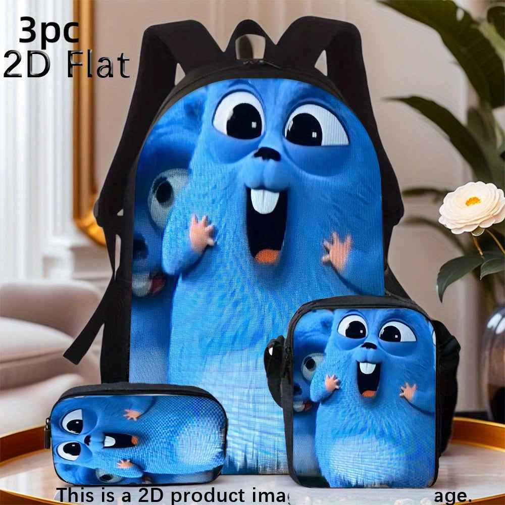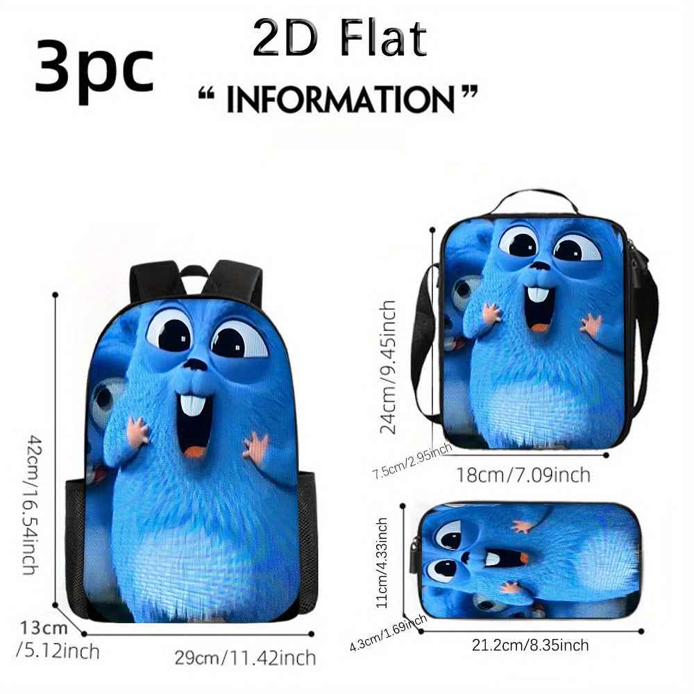 3pcs Zaino Grizzly & The Lemmings in Nylon Leggero e Capiente con Borsa Pranzo e Astuccio, Ideale per Scuola, Viaggi o Pendolarismo, Regalo Perfetto per Compleanno o Feste, Zaino da Viaggio