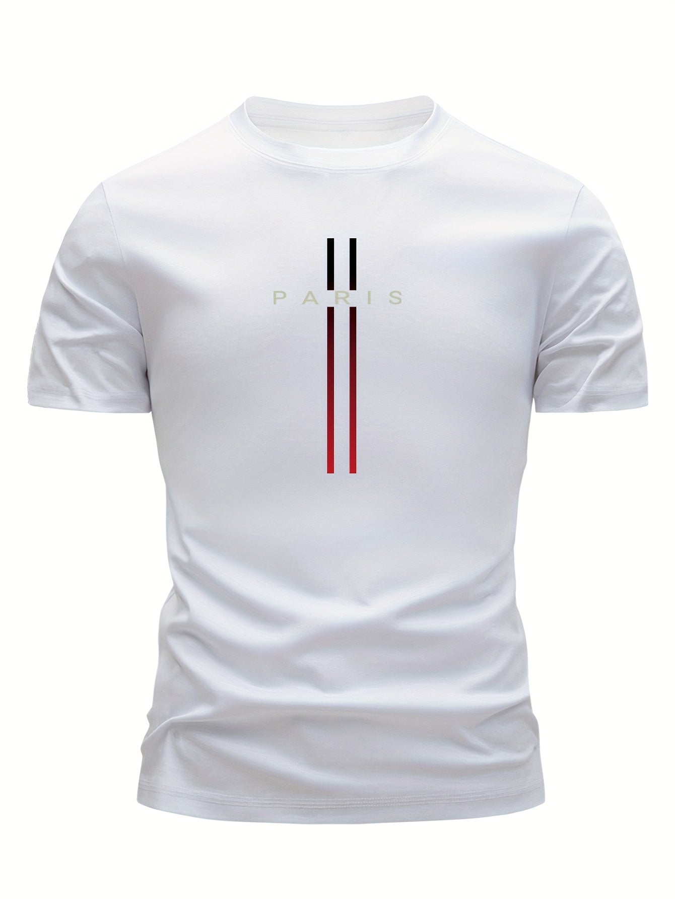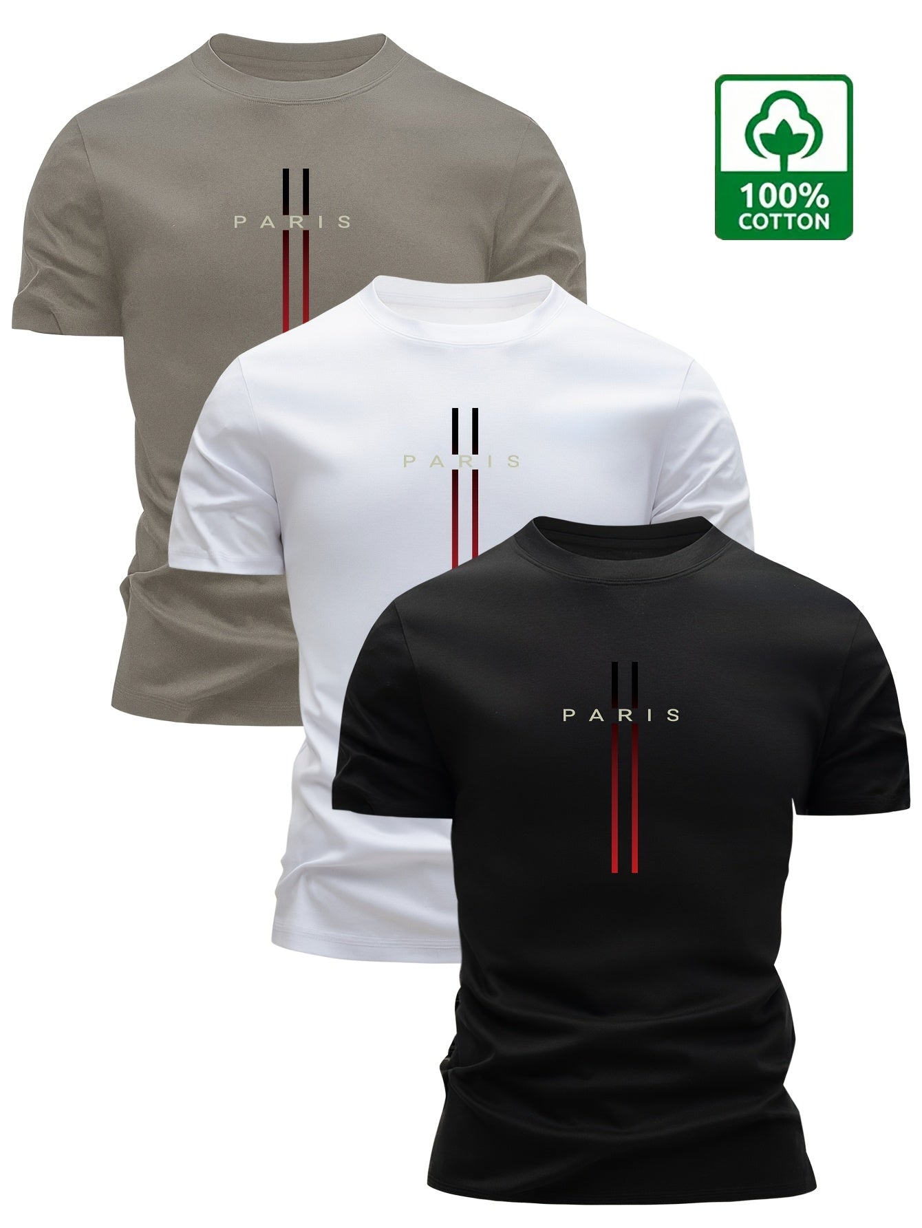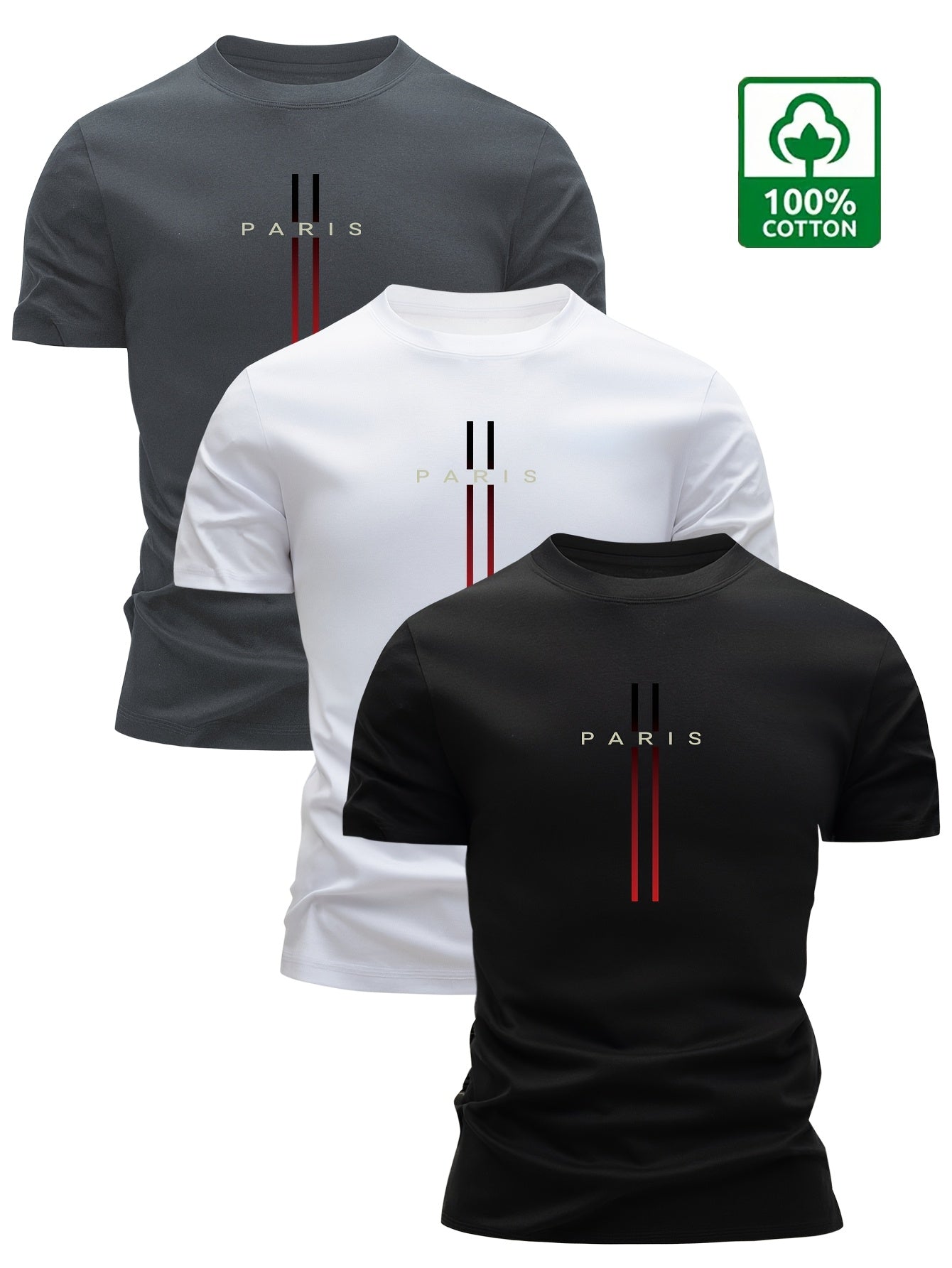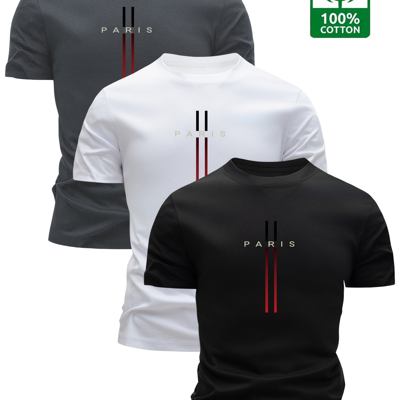 3pezzo T-Shirt estive 100% per uomo - Casual Crew Neck con design stampa Parigi, manica corta, leggero e traspirante per abbigliamento casual, uscite di fine settimana e attività all'aperto, abbigliamento casual estivo | T-Shirt con stampa Parigi | T-Shir