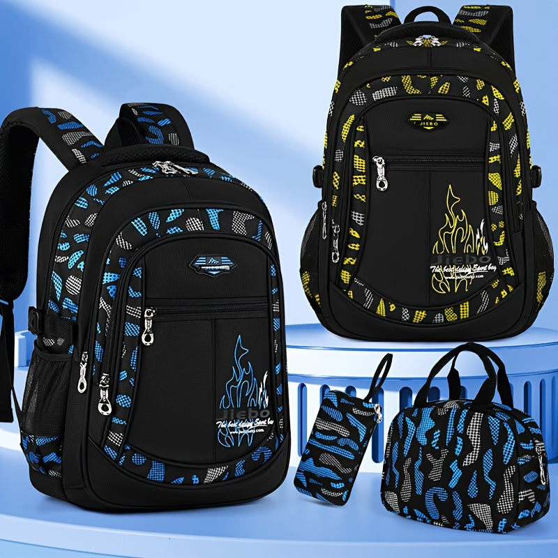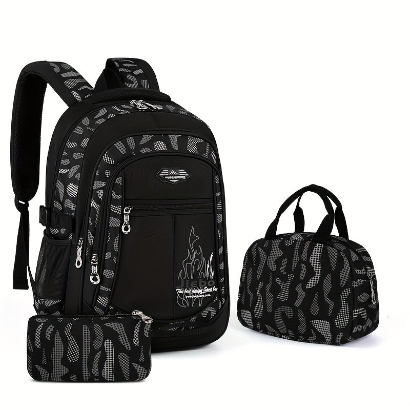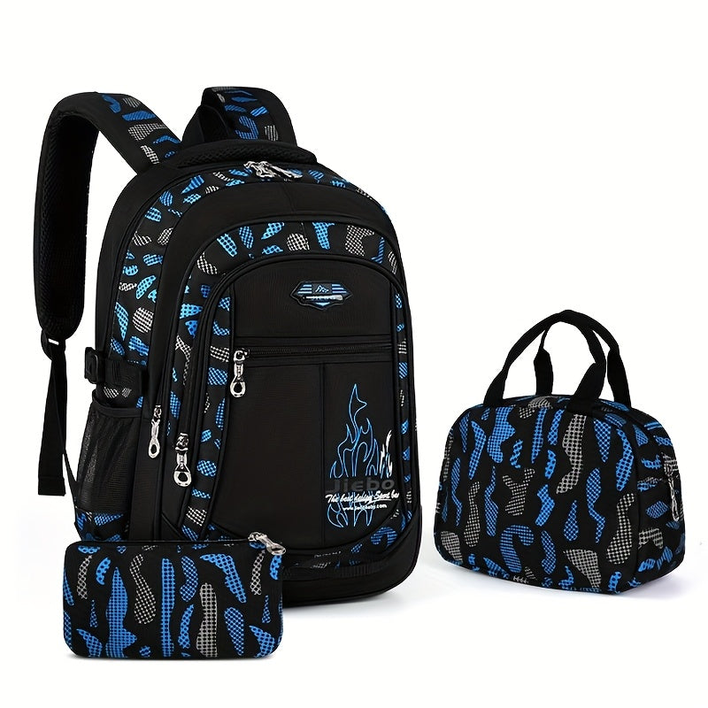 3pz Zaino Casual Oxford Set, Leggero con Stampa, Spallacci Regolabili, Chiusura a Cerniera, con Porta Pranzo e Astuccio, per la Scuola, Pulizia con Salviette Umidificate
