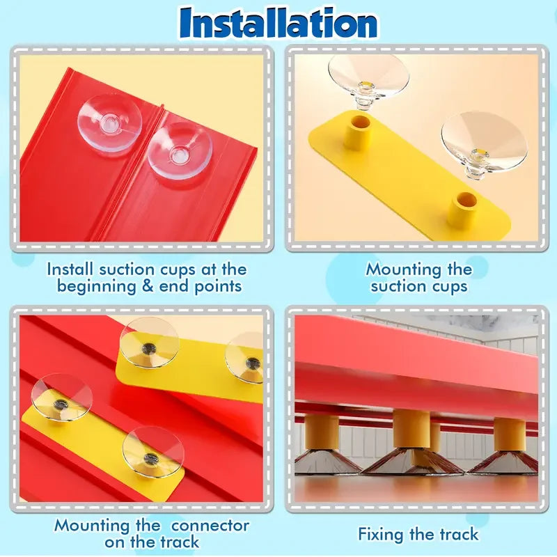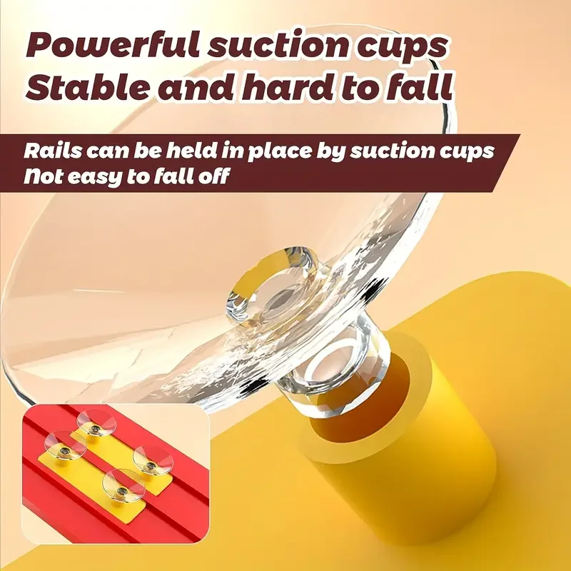 Attacca e corri ovunque!Il nostro binario da corsa flessibile è dotato di 12 potenti ventose che afferrano saldamente finestre, tavoli, porte e altre superfici lisce.Trasforma la tua casa in una zona avventura di pista da corsa per auto: abbassa il frigorifero o ingrandisci sulle porte in vetro.La pista rimane saldamente in posizione, così i bambini possono concentrarsi su questo.