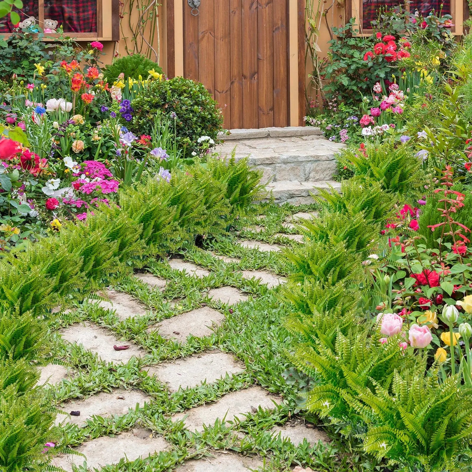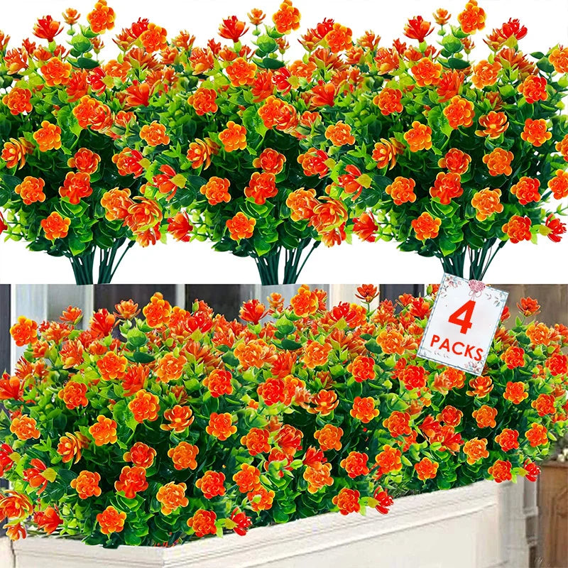 4 Bundles Artificial Plants Fake Boston Ferns Bushes Faux Shrubs Greenery UV Resistant Plant for Home Garden Outdoor Yard Decor