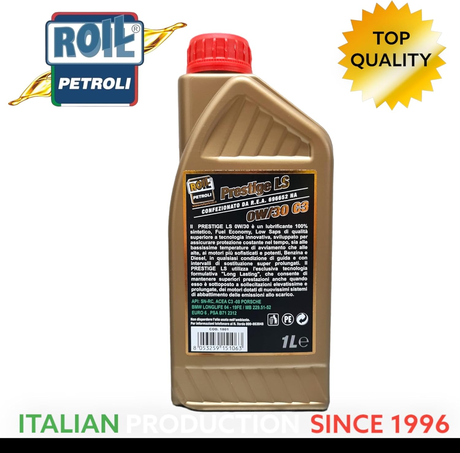 4 Litri di Roil LS 0W30 C2-C3 EURO 6 "NUOVA FORMULA MAGGIORE RISPARMIO DI CARBURANTE" - Olio Motore TOTALMENTE SINTETICO Low Saps LONG LIFE