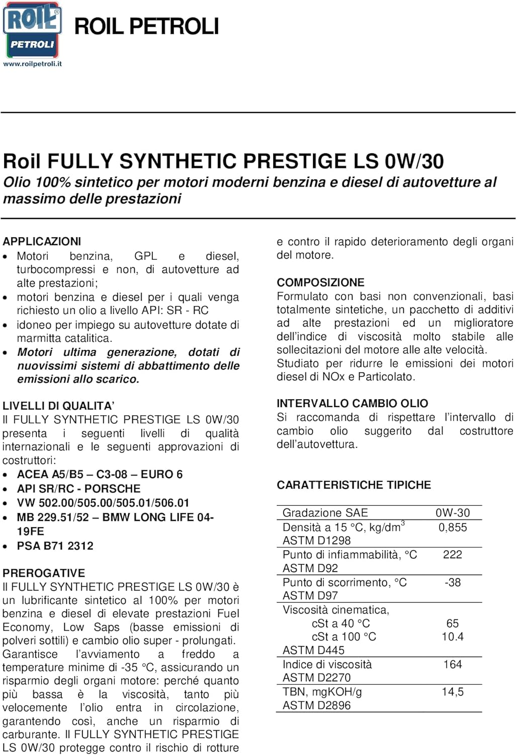 4 Litri di Roil LS 0W30 C2-C3 EURO 6 "NUOVA FORMULA MAGGIORE RISPARMIO DI CARBURANTE" - Olio Motore TOTALMENTE SINTETICO... Per saperne di più